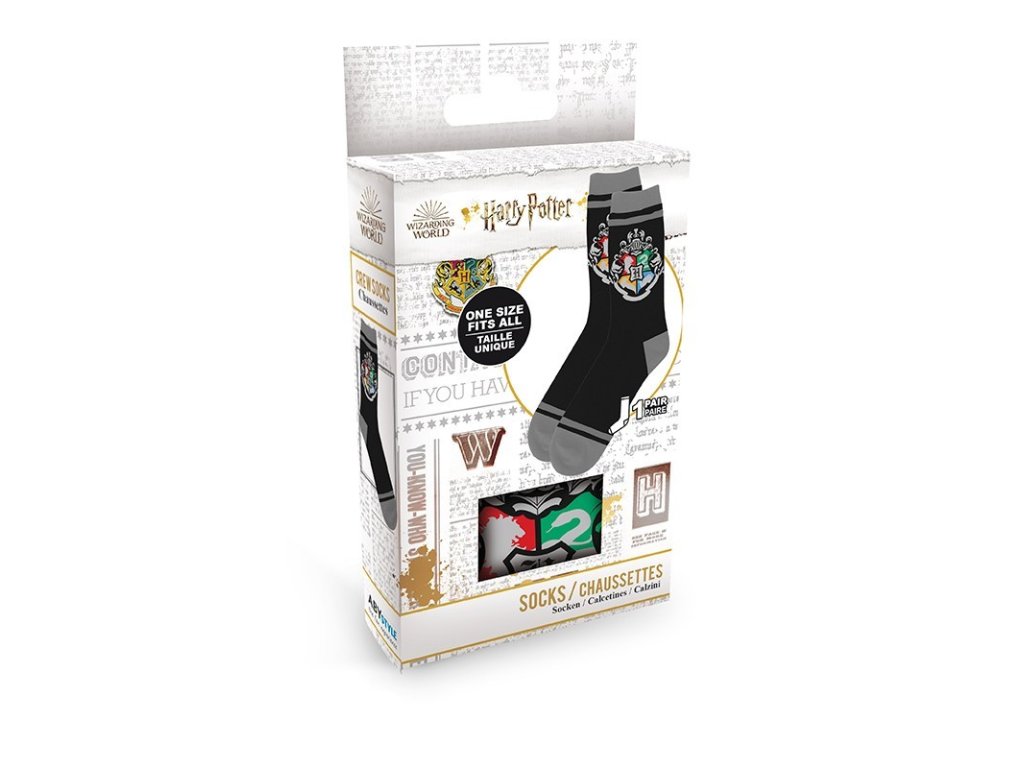 Ponožky s erbom Školy čarodejníckych umení v Bradaviciach sa budú hodiť všetkým fanúšikom Harryho Pottera! Pekný darček pre milovníkov magického sveta J. K. Rowlingovej. Balenie obsahuje jeden pár ponožiek univerzálnej veľkosti.Dodatočné parametre