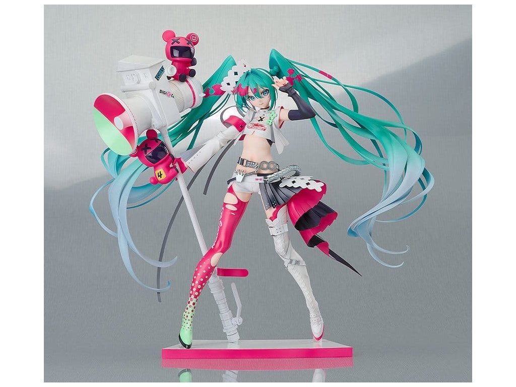 Figúrka v mierke oficiálneho projektu Hatsune Miku GT z roku 2022! Oficiálna figúrka projektu Hatsune Miku GT z roku 2022, Racing Miku 2022 Ver., je teraz figúrkou v mierke 1/7! Pôvodná ilustrácia Racing Miku pre rok 2022 od neco bola starostlivo oživená s úžasnými detailmi. Jej dynamická póza a štíhla postava určite zaujmú fanúšikov Racing Miku. Nenechajte si ujsť vlajúcu vlajku ani jej ohromujúci úsmev! Nezabudnite si do svojej zbierky pridať temperamentnú Racing Miku!Dodatočné parametre