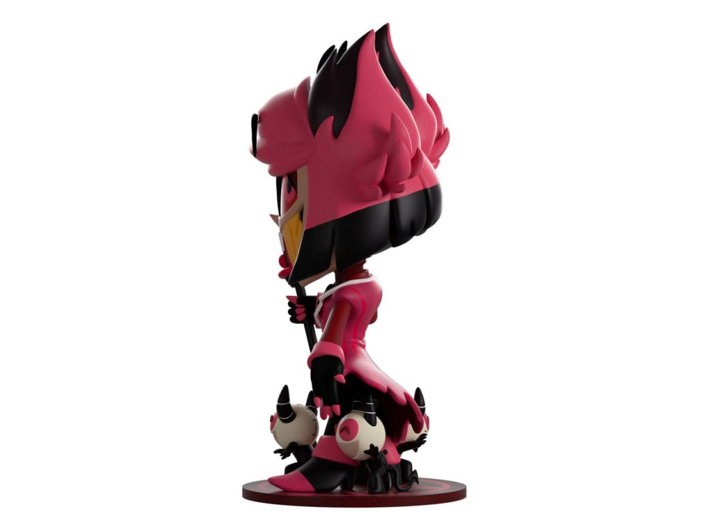 "Tak čo povieš?! Alastor sa rozhodol vydať na cestu a prvou zastávkou je Youtooz! S obrovským žltým úsmevom so špičákmi, ktorý sa mu tiahne po celej tvári pod jasne červenými očami, ktoré hľadia nahor, zatiaľ čo jeho ružovo-čierne vlasy splývajú do strán v hustej ofine a vyčnievajú v rohatých vrcholcoch. Je vysoký 13 centimetrov, ruky má vystreté a v ruke drží dlhú palicu zakončenú staromódnym mikrofónom. Na sebe má dlhý kabát s bielym lemovaním okolo klopí a stuhou okolo krku a okolo jeho dvojfarebných topánok stojí trojica sluhov pripravených plniť jeho príkazy. Na obale jeho obalu je zobrazená schátraná rozhlasová veža siahajúca do tmavočervenej oblohy, na ktorej svieti nápis "On Air", zatiaľ čo vnútro je pokryté elegantným červeným vzorom tapety, ktorý pokračuje na ochrannom obale, kde sa mení na tmavočiernu farbu a zobrazuje temnú mestskú krajinu, zatiaľ čo jeho postavu možno vidieť cez veľké priehľadné okno na prednej strane obalu. Tento zberateľský predmet sa dodáva v matnom, reliéfnom, ochrannom vonkajšom obale a prispôsobenom plastovom chrániči na maximálnu ochranu počas prepravy. O Hazbin Hotel Hazbin Hotel je animovaný hudobný seriál, ktorý vytvorila Vivienne "VivziePop" Medrano a ktorý sleduje Charlie Morningstar, princeznú pekla, v jej snahe "rehabilitovať" hriešnikov, aby sa mohli dostať do neba cez jej "Hazbin Hotel". Po pilotnom uvedení na YouTube v roku 2019 mala prvá séria premiéru na Amazon Prime Video v roku 2024, čo znamenalo najväčší debut nového animovaného seriálu na tejto platforme!