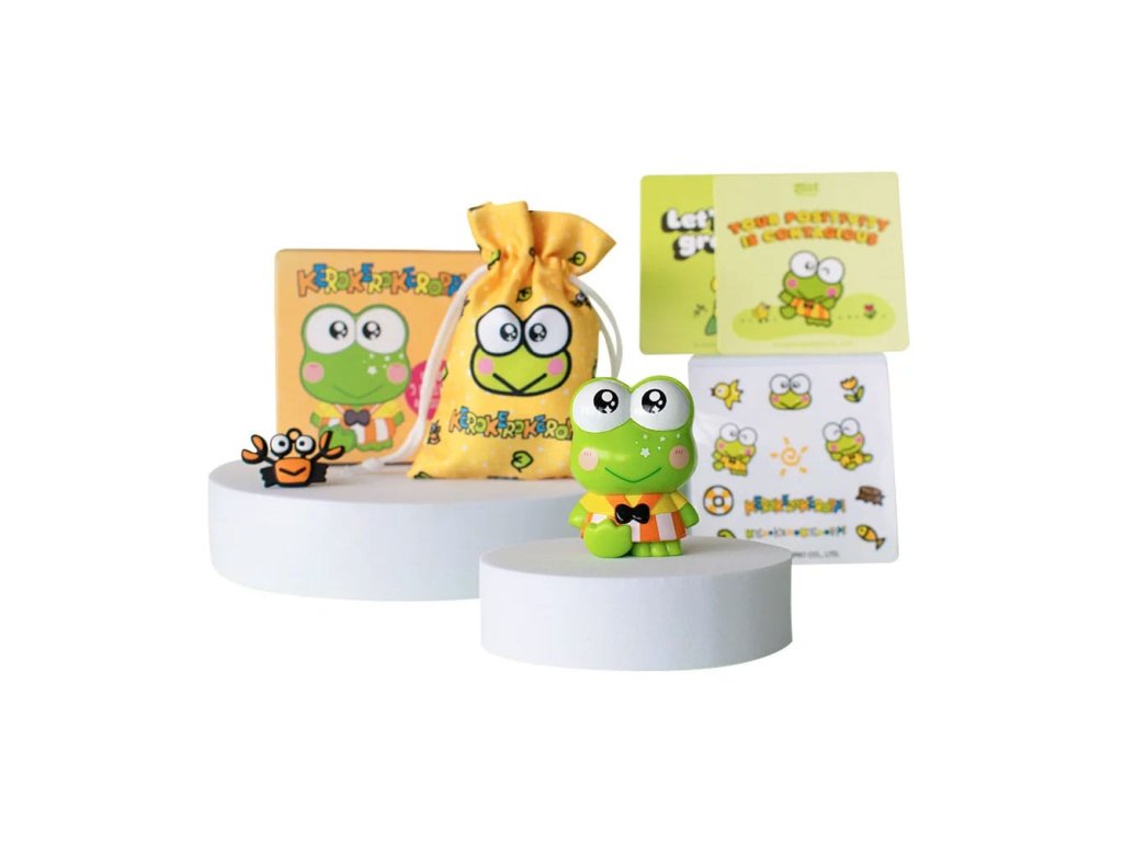 Vlastnosti: - Zberateľská figúrka Keroppi v štýle Kawaii - Súčasť kolekcie 10 figúrok - Obsahuje päť exkluzívnych doplnkov: 2 pohľadnice, 1 hárok so samolepkami, 1 prívesok a bavlnené vrecúško - Ideálna pre fanúšikov všetkých vekových kategórií - Môže zdobiť izbu a je pôvabným darčekom pre kamaráta - Kompaktné rozmery na umiestnenie kdekoľvek. Rozmery: 6 cm Vek: od 5 rokov.Dodatočné parametre