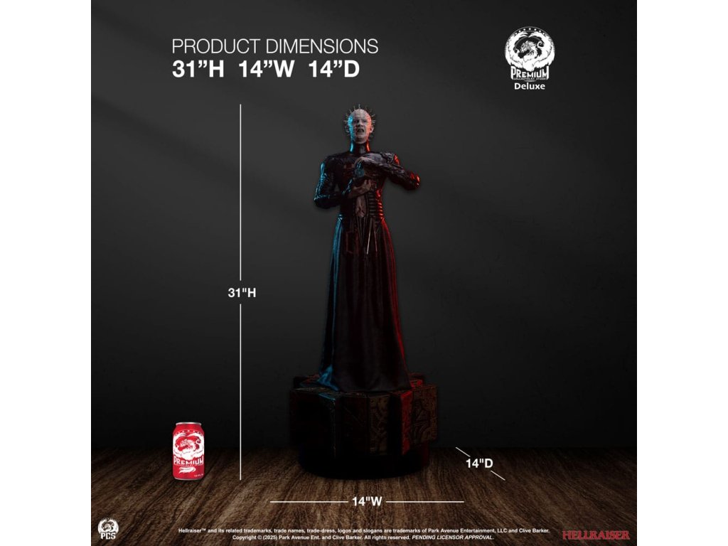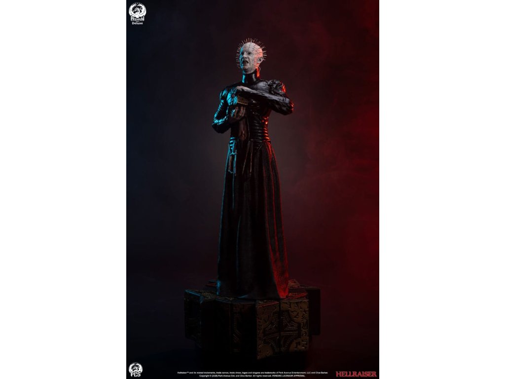 Štúdio Premium Collectibles hrdo predstavuje sošku Pinhead 1:3 Deluxe Edition, inšpirovanú postavou z klasického hororu Hellraiser. Takmer 79 cm vysoká socha je kompletne vyrezaná zo živice, ručne maľovaná a oplýva strašidelnými detailmi. Pinhead je tu vyobrazený s tajomnou škatuľkou na puzzle a s nehybným, éterickým výrazom v bledej tvári. Jeho prázdny výraz je ešte znepokojivejší vďaka starostlivo usporiadaným nechtom, ktoré mu trčia z celej hlavy. Veľkú námahu si vyžiadala rekonštrukcia neuveriteľných detailov Pinheadovho kostýmu, od starostlivo navrhnutého vzoru na dlhom čiernom rúchu pekelného kňaza až po hrdzavé mučiace nástroje, ktoré mu visia od pása. Pinhead je upevnený na podstavci vymodelovanom podľa transformovanej verzie skladačky, kľúča, ktorý Cenobitom otvoril cestu do našej dimenzie. Súčasťou deluxe edície je aj vymeniteľný portrét s intenzívnym výrazom zaťatých zubov, ktorý zberateľom ponúka ďalšiu možnosť vystavenia. Preskúmajte najvzdialenejšie končiny zážitku; zaobstarajte si sošku Hellraiser: Pinhead 1:3 Deluxe Edition od spoločnosti PCS ešte dnes!Veľkosť nákladu: 300Rozmery: 79 x 36 x 36 cm Približný dátum vydania: november 2026Dodatočné parametre