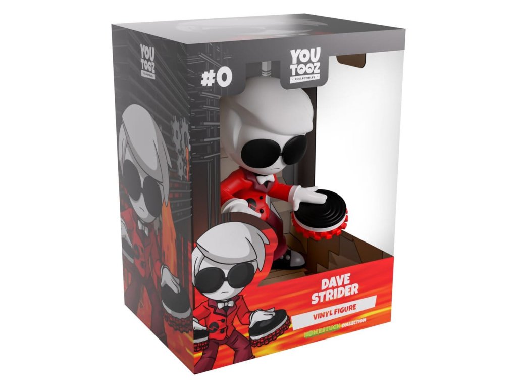 "Zobuď sa a džemuj." Youtooz spustil Sburb, aby ho privítal samotný rytier času, Dave Strider! Stojí 11 centimetrov vysoký s apatickým úsmevom a okrúhlymi čiernymi okuliarmi zakrývajúcimi oči, biele vlasy sa mu rozlievajú po hlave, ruky drží pred sebou, aby roztočil tie najlepšie džemy s čiernymi a červenými gramofónmi pripevnenými na dlaniach. Na golieri čiernej košele má bieleho motýlika, na sebe červené sako s bordovým golierom, ktoré ladí s rozšírenými nohavicami zakrývajúcimi jeho čierne tenisky. To však nie je všetko! Dave má 1-6 šancí na alchymistickú verziu Chase, ktorá nahrádza jeho oblečenie bielym sakom, červeným motýlikom, čiernymi nohavicami a sivými teniskami, takže vstúpte a skúste svoje šťastie! Exteriér jeho obálky je plný červenej a žltej lávy, ktorá vyteká zo sivých kovových zariadení, zatiaľ čo v interiéri vidíte samotného alchymistu v niekoľkoposchodovej hnedej budove. Ochranný kryt je potom pokrytý rušivou šachovnicou pod modrou oblohou plnou mrakov, zatiaľ čo jeho postavu vidíme cez veľké priehľadné okno na prednej strane krytu. Tento zberateľský predmet sa dodáva v matnom, reliéfnom, ochrannom vonkajšom obale a vo vlastnom plastovom chrániči pre maximálnu ochranu počas prepravy. O Homestucku: Homestuck je multimediálny webový komiks, ktorý vytvoril americký autor a výtvarník Andrew Hussey. Sleduje skupinu tínedžerov, ktorí inštaláciou pripravovanej videohry náhodou spustia koniec sveta, a bol ocenený pre svoj spletitý nelineárny príbeh, rozsiahly dej a skupinu rôznorodých postáv. Predbežný dátum vydania: júl 2026Dodatočné parametre