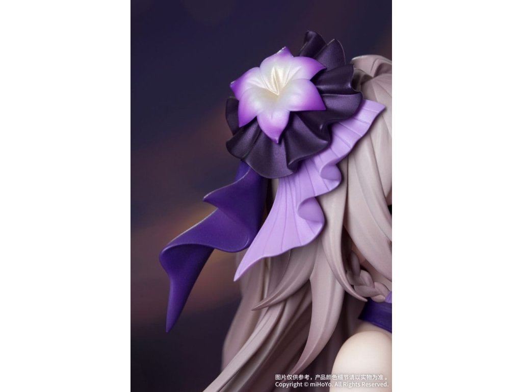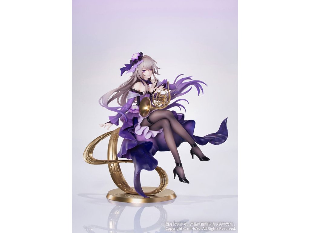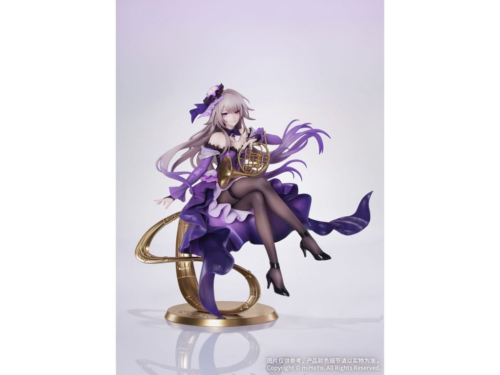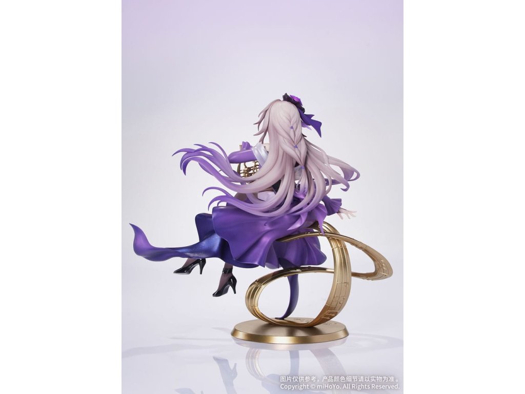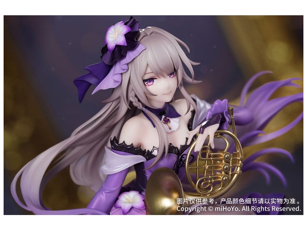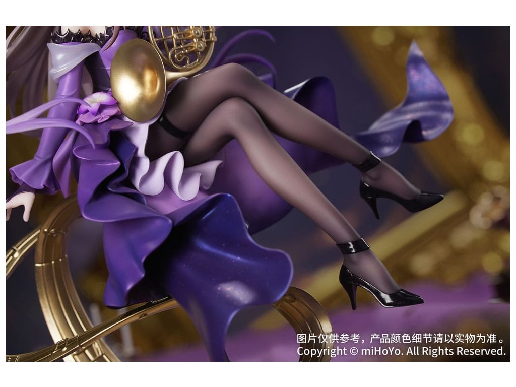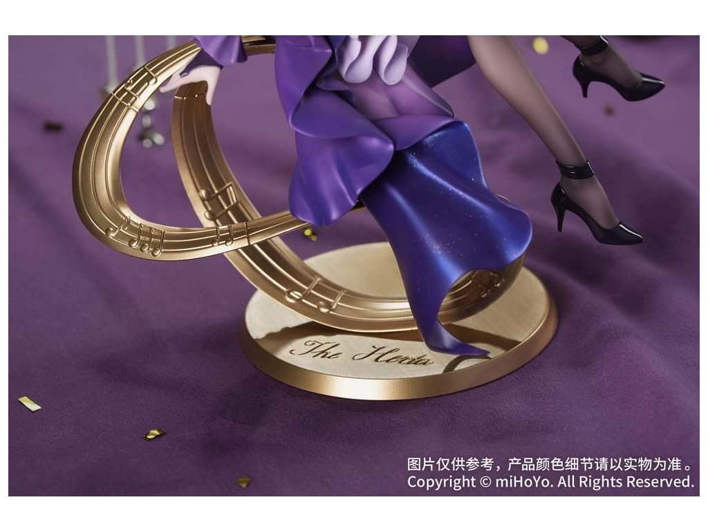 Z populárnej hry Honkai: Star Rail prichádza Herta: Star Rail LIVE Ver., nová figúrka v mierke 1:8 zo série Gift+! Herta drží v rukách roh, jej postoj je ladný a elegantný. Fialový šál má viacvrstvovú gradientnú povrchovú úpravu, zatiaľ čo perleťová farba dodáva elegantný a tajomný lesk. Vlečná sukňa sa leskne jemnými trblietkami a oslňuje, keď sa vznáša v ladnom pohybe. Priesvitné tmavé pančuchy ponúkajú pohľad na pokožku pod nimi, doplnené podväzkovým pásom a lesklými lakovanými podpätkami, ktoré zvýrazňujú jej očarujúci pôvab. Základňa, zakončená metalickou farbou, má podobu vyčnievajúceho hudobného listu a je na nej vyryté jej meno "The Herta". Nastal okamih univerzálnej rezonancie. Pionier, nechajte sa očariť jej prítomnosťou!Dodatočné parametre