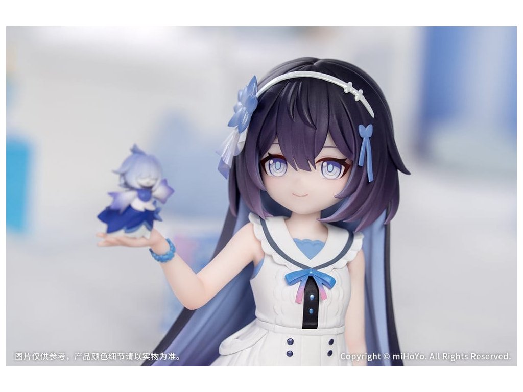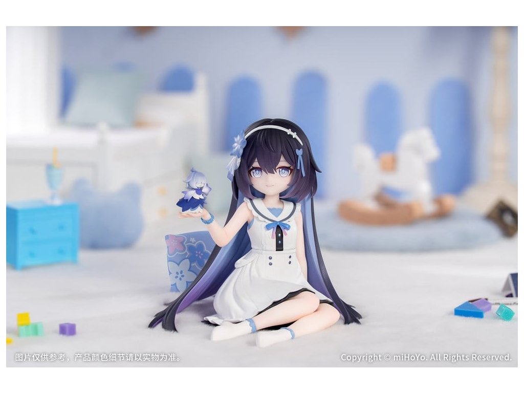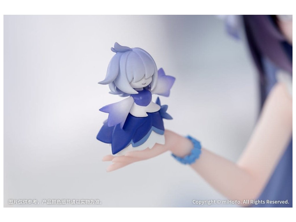 Seele: Herrscher of Rebirth z populárnej hry Honkai Impact 3rd už čoskoro príde ako chibi figúrka! Seele je oblečená v sladkých šatách bez rukávov a sedí skromne na boku. Dlhé tmavé vlasy jej voľne padajú, vo vlasoch má priehľadné kvetinové doplnky a na hrudi mašľu zvýraznenú perleťovou farbou pre väčšie detaily. Kvetinový duch Flora sa premení na drobnú postavu, ktorá jemne spočíva na Seeleinej dlani. Za ňou sa nachádza vankúš s kvetinovým vzorom, ktorý možno ľubovoľne rozmiestniť, čo vám umožní vytvárať roztomilé scény podľa vašich predstáv. Kapitáne, strávte toto hrejivé obdobie so Seele.Dodatočné parametre
