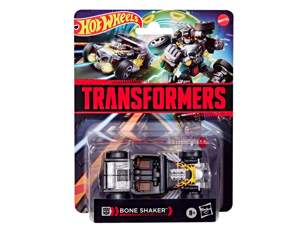 Epické svety Transformers a Hot Wheels® sa stretávajú s transformovateľnou figúrkou Hot Wheels® x Transformers Bone Shaker™! Balenie obsahuje: figúrku, príslušenstvo a návod. Figúrka s veľkosťou 12,5 cm sa transformuje z robotickej akčnej figúrky na auto inšpirované Bone Shaker™.
