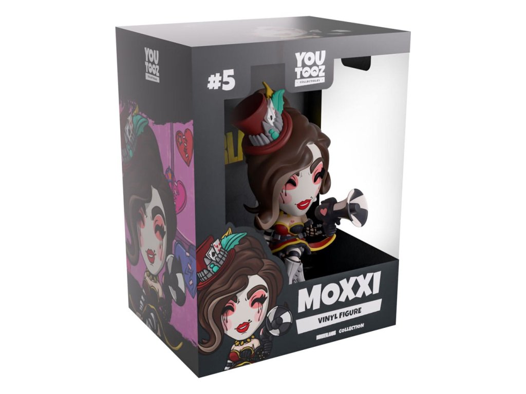 "V Moxxi si vždy vítaná, zlatíčko." Ďalšie kolo je na Youtooz s debutom Moxxi! Sedí 14 cm vysoká na pevnej čiernej klenbe a v ľavej ruke drží pruhovaný megafón, bordový klobúk na jej dozadu stiahnutých hnedých vlasoch zdobí množstvo nábojov, hracích kariet a farebných pier. Na tvári má svoj charakteristický mejkap z bieleho púdru, ružových líčok a čiernej riasenky na slzy. Moxxi je oblečená do bordových a čiernych šiat lemovaných žltou farbou, pričom jej prekrížené nohy ukazujú sedacie čižmy siahajúce po vysoké kolená. Vonkajšia strana obalu zobrazuje pozadie ružovej a zelenej farby, zatiaľ čo vnútro je tmavosivé a vzorované opakujúcim sa logom trezora. Na ochrannom obale je zobrazená Moxxi stojaca pred zmačkaným logom trezora na tmavosivom pozadí, pričom jej postavu je vidieť cez veľké priehľadné okienko na prednej strane. Tento zberateľský predmet bol navrhnutý v spolupráci s @therealracckun a dodáva sa v matnom, reliéfnom ochrannom obale a plastovej ochrane presne dimenzovanej na maximálnu ochranu počas prepravy. O hre Borderlands - Borderlands, ktorú vyvinula spoločnosť Gearbox Software a vydala spoločnosť 2K, je populárna akčná strieľačka v sérii videohier známa svojou rýchlou akciou, jedinečným výtvarným štýlom a nekompromisným humorom. Ako lovci trezorov sa vydáte do neľútostnej krajiny Borderlands na výpravu za trezormi plnými tajomných mimozemských pokladov a neopísateľnej moci. Nanešťastie, megakorporácie, násilnícki banditi a otravní, neprajní roboti chcú všetko pre seba. Pripravte sa, lovci trezorov, a pripravte sa na boj so Šestkou!Dodatočné parametre