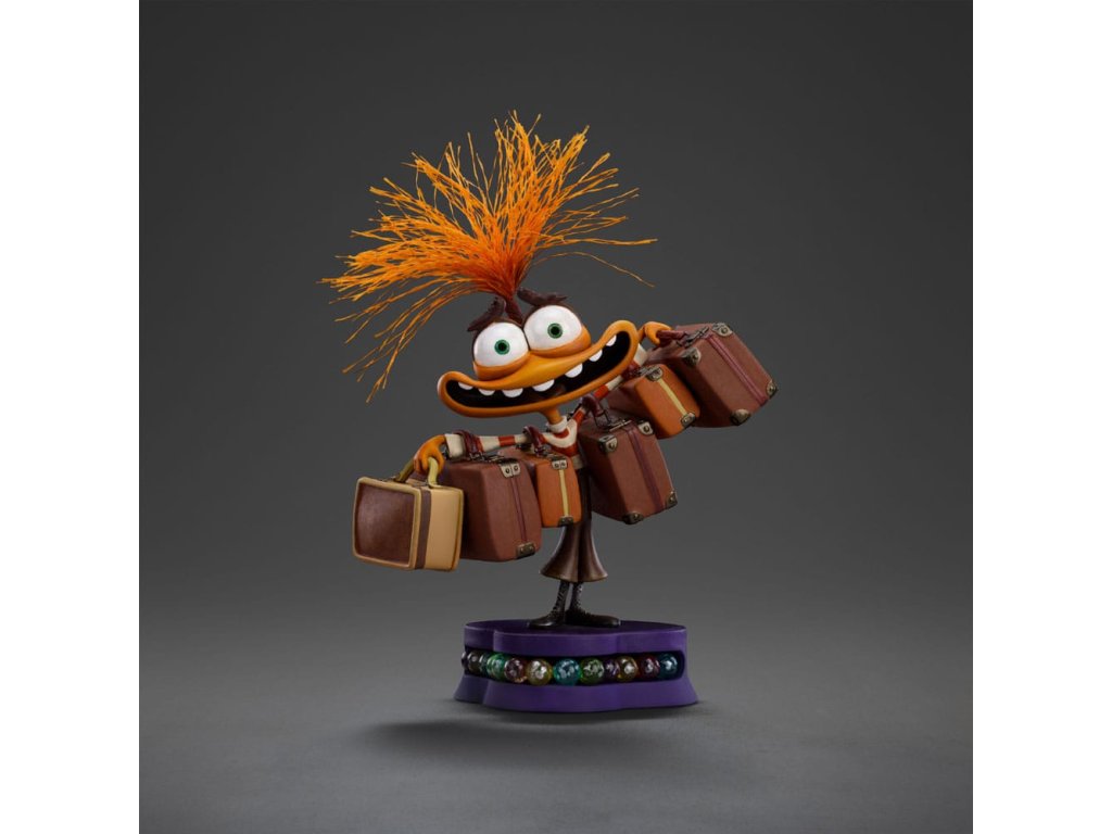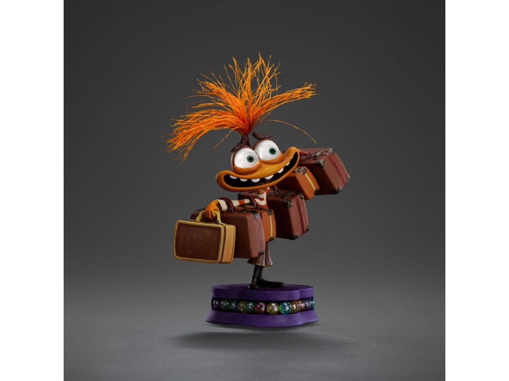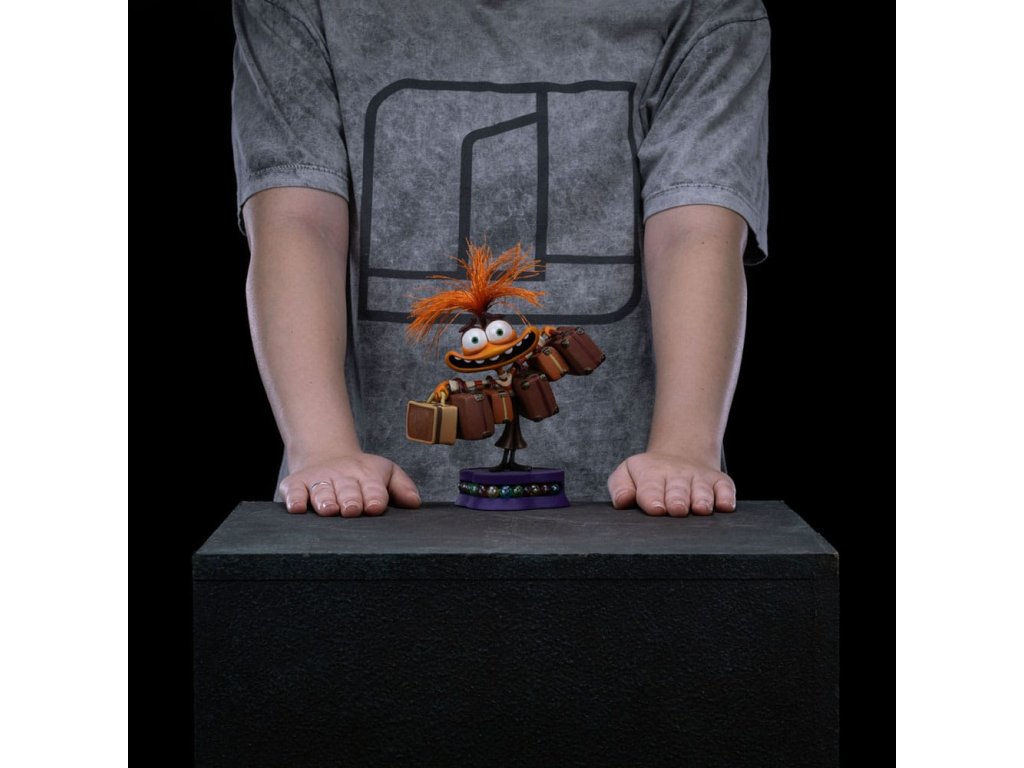 "Kto je Úzkosť?" V pokračovaní filmu Inside Out (2015) objavuje myseľ teraz už dospievajúcej Riley Andersenovej nové emócie. K Radosti, Smútku, Hnevu, Strachu a Znechuteniu, ktoré kedysi ovládali dievčenské riadiace centrum, pribudne očakávaná Úzkosť spolu so Závisťou, Nudou, Rozpakmi a Nostalgiou. Ako sa Riley pripravuje na strednú školu, pôvodné emócie spolupracujú, umiestňujú jej spomienky do nového priestoru, aby formovali jej charakter, čo vedie k vytvoreniu vlákien, ktoré vyjadrujú jej vnútorné ja. Emócie sú šokované stretnutím s Úzkosťou, jednou z nových emócií v Rileyinej mysli, ktorá pripravuje novú tínedžerku na všetky možné negatívne výsledky, pričom starostlivo usporiadané zoznamy a plány majú zabezpečiť, aby Riley nikdy neurobila chybu, myslela desať krokov dopredu a nemala problém podeliť sa o najhoršie scenáre. Úzkosť vie, že je toho veľa, ale cíti, že dotlačiť Riley k dokonalosti znamená priblížiť sa k jej cieľom. Stelesňuje pocity nervozity, napätia, stresu a podobne, jej hlavnou úlohou je chrániť Riley pred vecami, ktoré nevidí, a plánovať budúcnosť. Objavenie toku sochy Úzkosť: Oblečená vo vysokom roláku, pruhovanom oranžovo-bielom vlnenom svetri, opálených nohaviciach a dobre zašnurovaných tmavohnedých vojenských topánkach, zosobňuje v mysli mladého dievčaťa novú emóciu. Objavuje sa s oranžovou pokožkou, tvárou pripomínajúcou malú žabu a účesom ako výbuch sopky. Energická zelenooká postava sa usmieva a predstavuje sa s otvorenými rukami, v ktorých drží šesť kufríkov, stojacich na podstavci, ktorý kopíruje podlahu riadiacej miestnosti v Rileyinej mysli s farebnými sklenenými guľami nazývanými Memory Orbs, kde sú uložené jej spomienky. Iron Studios predstavuje sochu "Anxiety - Inside Out 2 - Artistic Scale 1/10" inšpirovanú 28. animovaným filmom spoločnosti Pixar Inside Out 2. Podrobnosti o postave: Socha bola vytvorená s mimoriadnou starostlivosťou a pozornosťou na základe oficiálnych referencií, čo zaručuje pôsobivé zobrazenie postavy v akomkoľvek prostredí. Špeciálne vlastnosti:Soška The Anxiety - Inside Out 2 - umelecká soška v mierke 1/10 bude vyrobená v limitovanej edícii. Dioramatické podstavce predstavujú bohaté detaily inšpirované pôvodnými referenciami. Materiály a vyhotovenie sochy: Rovnako ako všetky ostatné sochy vyrobené spoločnosťou Iron Studios je aj socha Anxiety - Inside Out 2 - umelecké meradlo 1/10 vyrobená z vysokokvalitných materiálov, ako je polyston, a môže obsahovať časti zo živice, PVC, kovu a látky. Pokiaľ ide o povrchovú úpravu, ručne maľovaná socha poskytuje jedinečný a umelecký nádych, ktorý uspokojí každého zberateľa. Bola predstavená počas októbrového dňa Inside Iron Studios Halloween a teraz je k dispozícii na predobjednávku. Pozrite si ďalšie sošky "Joy a Anxiety - Inside Out 2 - Deluxe Artistic Scale 1/10", ktoré boli predstavené na augustovom podujatí D23: The Ultimate Disney Fan Event, a individuálnu verziu "Joy - Inside Out 2 - Artistic Scale 1/10" spolu s mnohými ďalšími pripravovanými vydaniami Disney-Pixar od Iron Studios. Film Inside Out 2 z produkcie Walt Disney Pictures a Pixar Animation Studios sa stretol s pozitívnym ohlasom kritikov, stal sa jedným z desiatich najziskovejších filmov v histórii a je druhým najziskovejším animovaným filmom, hneď po "Levom kráľovi".Dodatočné parametre