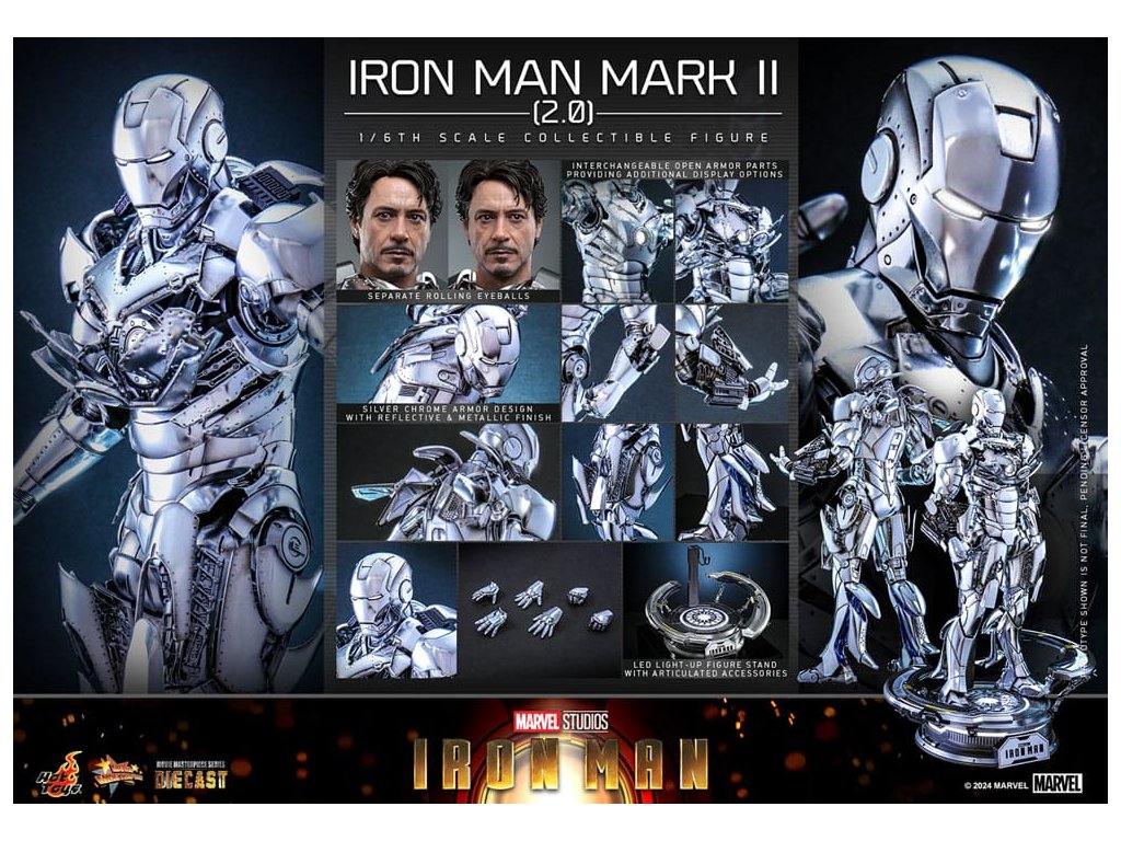 Brnenie Iron Man Mark II má v srdciach fanúšikov špeciálne miesto a významne ovplyvnilo odkaz Iron Mana. Ako nástupca brnenia Mark I prešlo brnenie Mark II rozsiahlymi vylepšeniami, najmä čo sa týka jeho vzhľadu. Jedným z najvýraznejších prvkov brnenia Mark II sú jeho čisto strieborné pláty. Táto jedinečná vlastnosť ho odlišuje od ostatných oblekov Iron Mana a dodáva mu výraznú vizuálnu príťažlivosť. Strieborné pláty dodávajú brneniu elegantný a futuristický vzhľad, čím zdôrazňujú jeho high-tech charakter. spoločnosti Sideshow a Hot Toys s radosťou odhaľujú verziu 2.0 akčnej figúrky Iron Man Mark II v mierke 1/6, ktorá obohatí vašu zbierku brnení! Neodmysliteľnou črtou tejto tlakovo liatej figúrky je nepochybne kombinácia viac ako 100 kusov strieborného chrómového brnenia, ktorá prekonáva brnenie všetkých ostatných figúrok Hot Toys, vďaka čomu je ešte pôsobivejšia a vizuálne výraznejšia. nádherne spracovaná pomocou tlakovo liatych materiálov, akčná figúrka Iron Man Mark II (2.0) v mierke 1/6 v striebornom chróme verne stvárňuje ikonické brnenie videné v prvom filme Iron Man. Medzi funkcie patrí novo vyvinutá socha hlavy s ohromujúcou podobou a samostatným systémom otočných očí; vymeniteľná prilba Iron Mana s LED podsvietenými očami; LED podsvietený dizajn na oblúkovom reaktore a dlaniach, ktorý vytvára pútavý svetelný efekt. Vymeniteľné otvorené časti brnenia, ktoré poskytujú ďalšie možnosti zobrazenia figúrky v rôznych štádiách montáže brnenia a ukazujú premenu Iron Mana. Súčasťou balenia je špeciálne navrhnutá základňa pre figúrku inšpirovaná dielňou Tonyho Starka, ktorá dodáva vystaveniu prvok pohltenosti, vďaka ktorému sa figúrka cíti ako skutočná súčasť Starkovho sveta. Rezervujte si túto fantastickú akčnú figúrku Marvel a ukážte svoju lásku k Iron Manovi!Dodatočné parametre