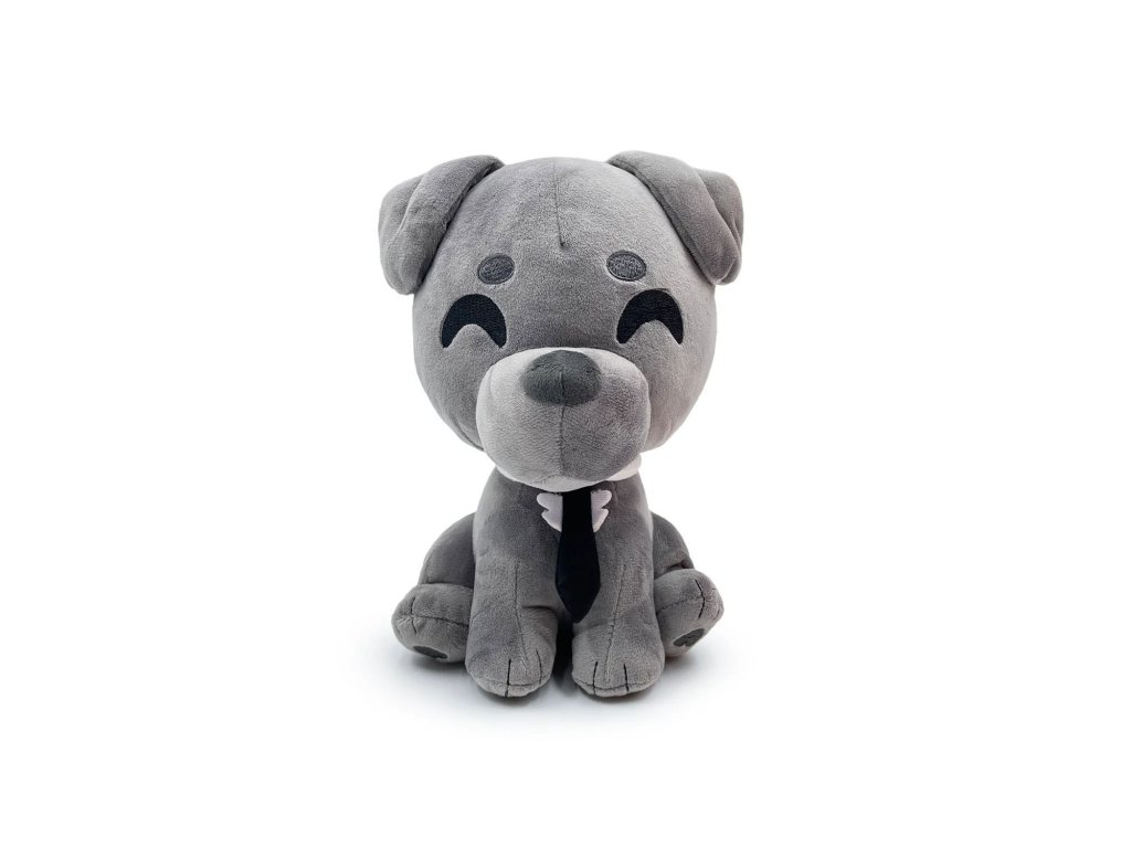Je vysoký 22 cm, má tie najroztomilejšie uši, ktoré mu plandajú na sivohnedej hlave, a široký ňufák s dokonalým oválnym ňufákom, takže sa na vás pozerá s tým najroztomilejším výrazom v tvári! Má na sebe biely oblek a dlhú čiernu kravatu, ktorá mu visí cez znaky na hrudi, sedí s dvoma zadnými nohami vykopnutými dopredu, aby odhalil tie najroztomilejšie vankúšiky na labkách v tvare srdca, a pritom spokojne vrtí svojím dlhým chvostom!