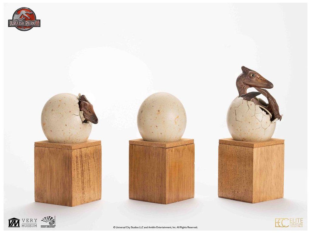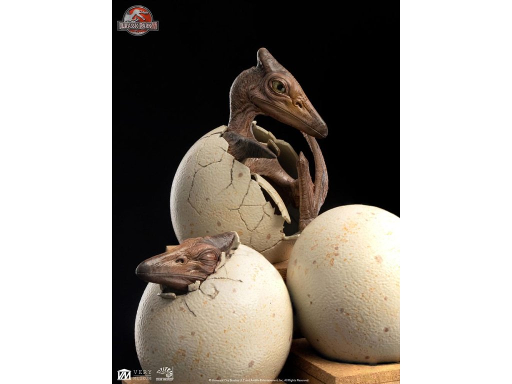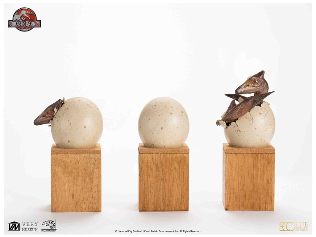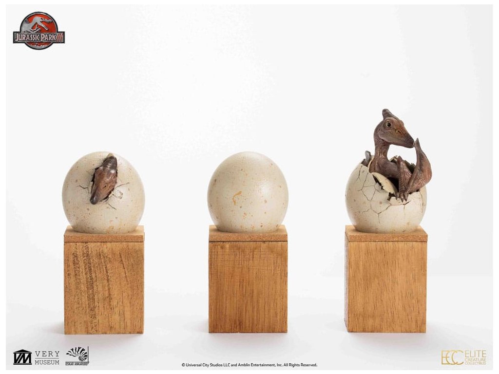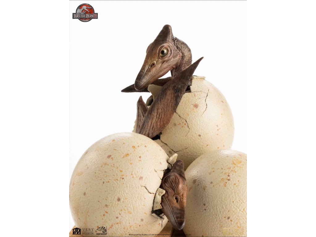 Elite Creature Collectibles s hrdosťou predstavuje vyliahnutého pterosaura z Jurského parku III v spolupráci s umelcom Oscarom Ankaruddom. Ide o tretiu časť série v mierke 1:2, v ktorej sú vyliahnuté dinosaury. Inštalačná súprava zobrazuje 3 fázy liahnutia, od prasknutia vajíčka až po vyliahnutie pterosaura. Špecifikácie: - Výška približne 6,4 palca (16,2 cm). (Približne 2,8 palca (7,2 cm) na šírku. (Približne 2,6 palca (6,6 cm) do hĺbky. (Vajíčko s podstavcom) - Odliate z vysokokvalitnej živice s ručne maľovanými detailmi - Vajíčka sú odnímateľné z podstavca - Sklenené oči - Podstavec v múzejnom štýle - Ku každému kusu je priložená kovová plaketa podpísaná Oskarom Ankaruddom. - Pri tlači náčrtu "The Hatching Pterosaur" budú do jednej z edícií náhodne zapečatené originálne rukopisy umelca ONE-OFF, čo znamená, že existuje 1% šanca vyhrať originálny obraz od umelca Oskara Ankarudda! Limitované na 99 kusov na celom svete.Dodatočné parametre