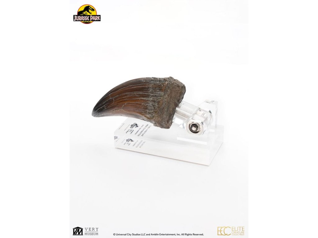Spoločnosť ECC s hrdosťou predstavuje ručné klopadlo T-Rexa z oceňovaného sci-fi dobrodružstva Stevena Spielberga Jurský park. T-Rex bol prvým dinosaurom, ktorý po výpadku prúdu spustošil ostrov - najmä počas svojho dramatického úteku a ikonického útoku na hlavné postavy v turistických vozidlách Ford Explorer. Tento rekvizitný klaun bol vyrobený pre ruku animatronického T-Rexa v životnej veľkosti. Pôvodnú palicu T-Rexa použitú vo filme navrhol a vytvaroval umelec špeciálnych efektov Rob Hinderstein. Spoločnosť Elite Creature Collectibles s hrdosťou predstavuje repliku klaky na ruku T-Rexa. Tento odliatok bol vytvorený z pôvodnej formy s dodatočným prepracovaním okraja a spodnej strany tlieskadla Oscarom Ankaruddom. Klapka je vystavená na akrylovom podstavci v aukčnom štýle, ktorý má na zadnej strane nohy pripevnený kovový nápis.Špecifikácie: - Rozmery (klepáč): 5,2" x 2,4" x 2,4" (13 cm x 6 cm x 6 cm) - Rozmery (klepáč s displejom): 5,2" x 5,2" x 2,4" (13 cm x 13 cm x 6 cm) - Odliaty z kvalitnej živice s ručne maľovanými detailmi - Odnímateľný klepáč - Štítok v múzejnom štýle s číslom edície - Akrylový podstavec v múzejnom štýle Limitovaný na 300 kusov!Dodatočné parametre