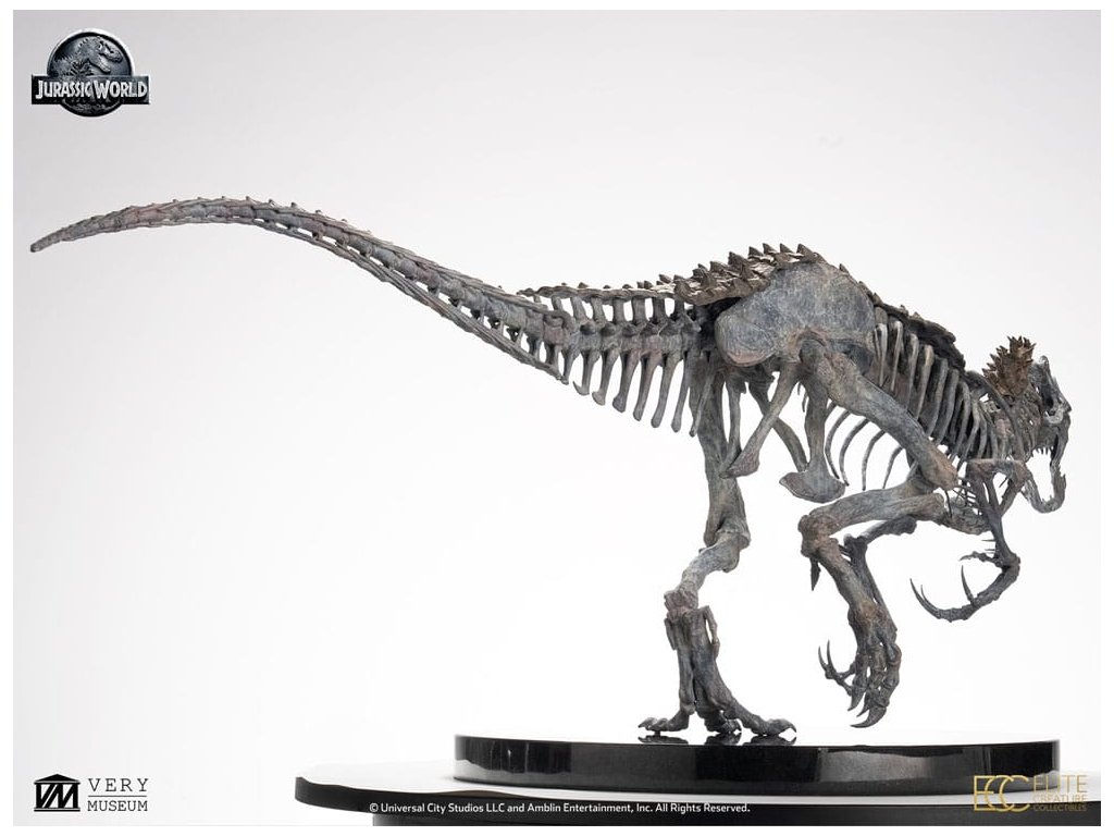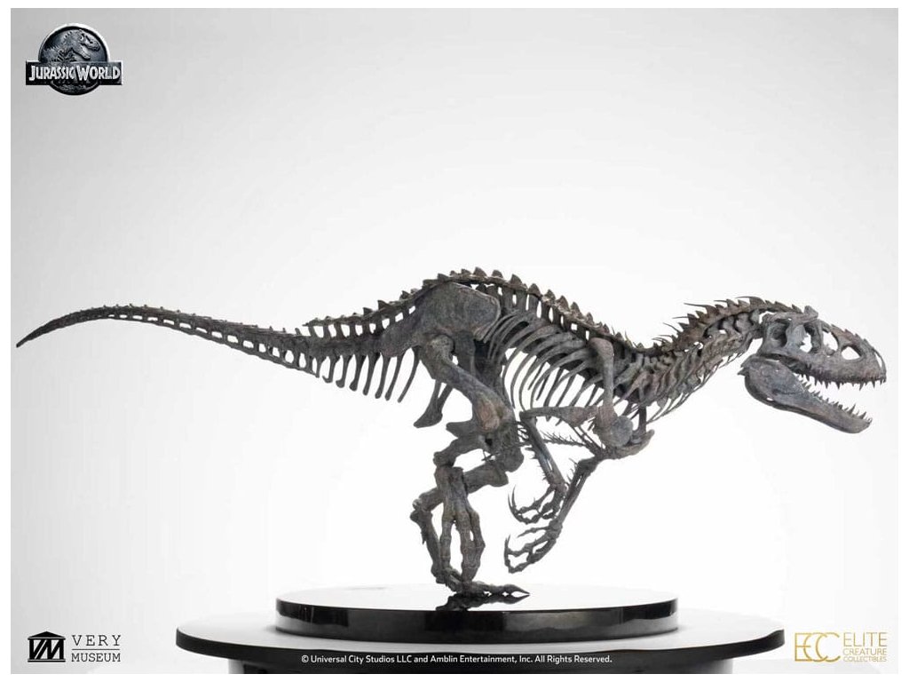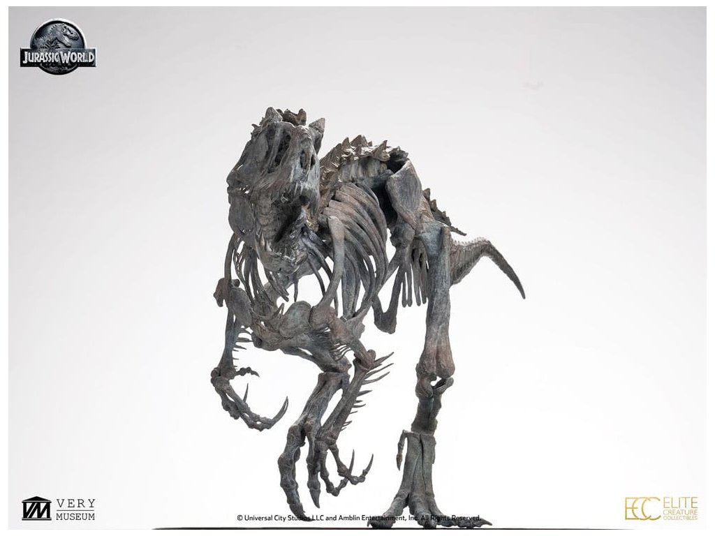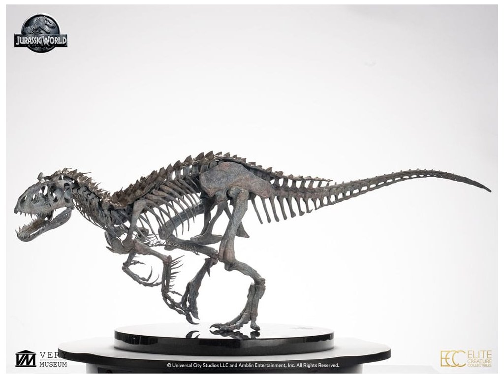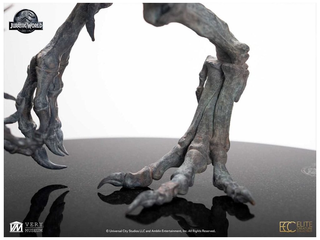 V prvom filme Jurský svet bol Indominus Rex vytvorený ako ďalšia veľká atrakcia parku, ktorá má zvýšiť návštevnosť a zisk. Hybrid vznikol úpravou genómu Tyranosaura rexa pomocou DNA rôznych iných teropodov.Vo filme Jurský svet: Padlé kráľovstvo je tím žoldnierov vyslaný na ostrov Isla Nublar, aby získal pozostatky Indominusa Rexa z lagúny Jurského sveta a vytvoril nového geneticky upraveného hybrida - Indoraptora. Vďaka tomu si diváci mohli prvýkrát naplno pozrieť kostru Indominusa, keď sa ponorka ponorila pod vodu, aby získala jedno z jeho rebier. elitná stvoriteľská spoločnosť s hrdosťou predstavuje kostru Indominusa Rexa v bronzovej farbe. Umelec ILM Bitan verne zrekonštruoval kostru Indominusa Rexa, obnovil drobné detaily, ktoré na striebornom plátne neboli viditeľné, a pridal charakteristické znaky Indominusa vrátane častí jeho kože a výrazných tŕňov. kostra je starostlivo vyrobená z vysokokvalitného bronzu s patinou v tvare fosílie, osadená na mramorovom podstavci.Špecifikácie:- výška: približne 13,8 palca (35 cm)- šírka: približne 42,1 palca (107 cm)- hĺbka: približne 15,8 palca (40 cm)- umelecký bronz s mramorovým podstavcom- vyrobené na objednávkuObmedzené na 30 kusov na celom svete.Dodatočné parametre