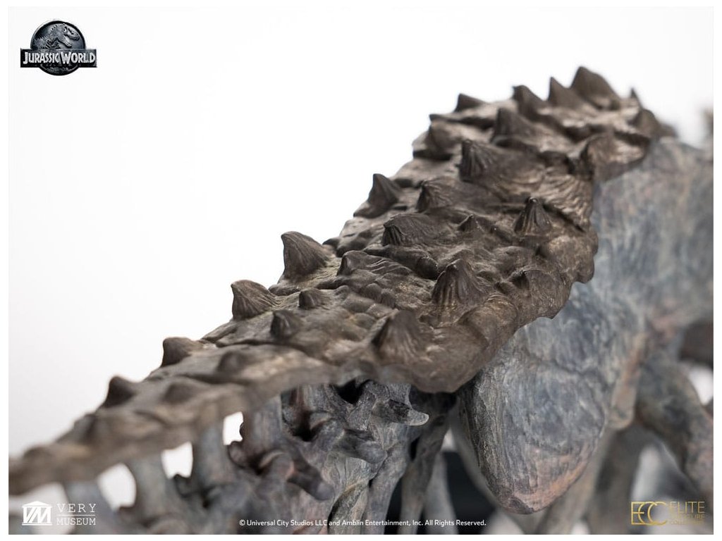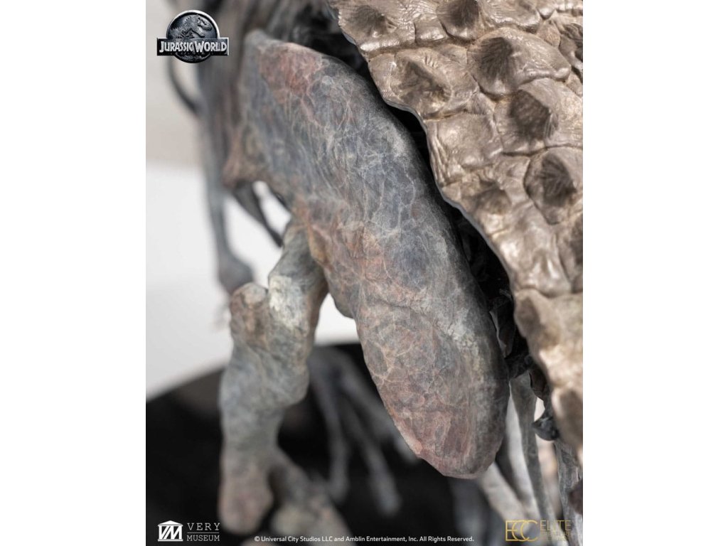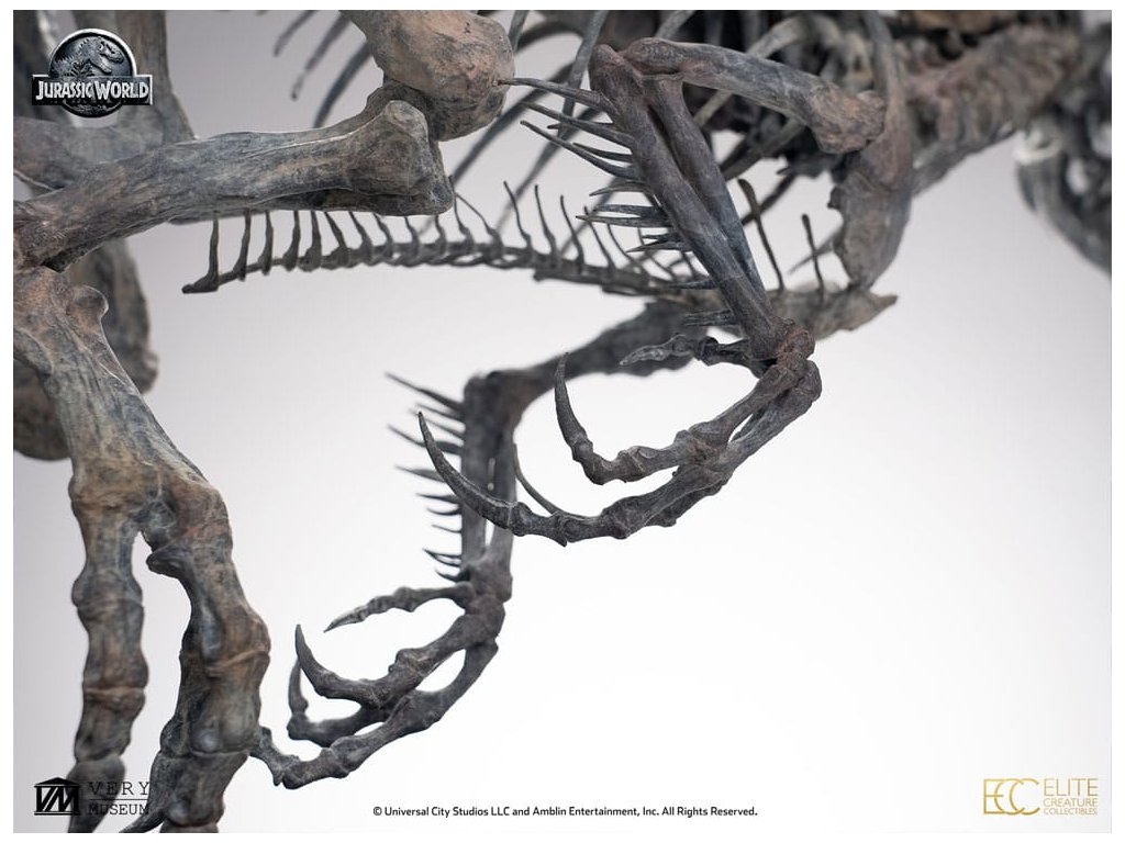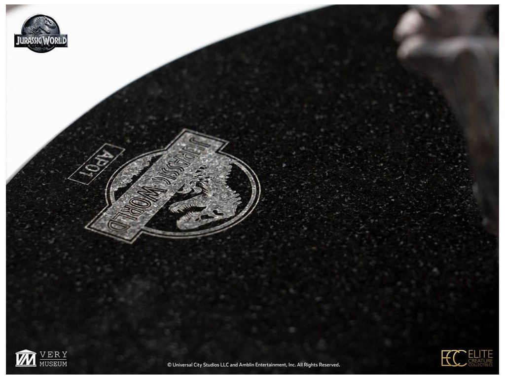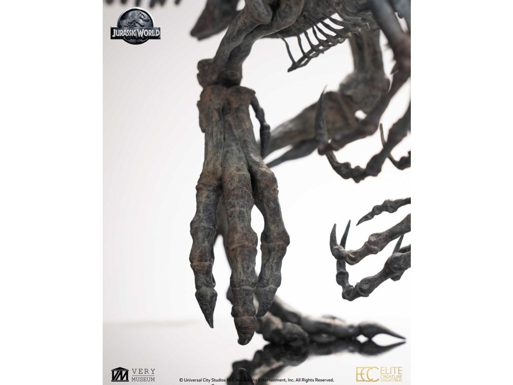 V prvom filme Jurský svet bol Indominus Rex vytvorený ako ďalšia veľká atrakcia parku, ktorá má zvýšiť návštevnosť a zisk. Hybrid vznikol úpravou genómu Tyranosaura rexa pomocou DNA rôznych iných teropodov.Vo filme Jurský svet: Padlé kráľovstvo je tím žoldnierov vyslaný na ostrov Isla Nublar, aby získal pozostatky Indominusa Rexa z lagúny Jurského sveta a vytvoril nového geneticky upraveného hybrida - Indoraptora. Vďaka tomu si diváci mohli prvýkrát naplno pozrieť kostru Indominusa, keď sa ponorka ponorila pod vodu, aby získala jedno z jeho rebier. elitná stvoriteľská spoločnosť s hrdosťou predstavuje kostru Indominusa Rexa v bronzovej farbe. Umelec ILM Bitan verne zrekonštruoval kostru Indominusa Rexa, obnovil drobné detaily, ktoré na striebornom plátne neboli viditeľné, a pridal charakteristické znaky Indominusa vrátane častí jeho kože a výrazných tŕňov. kostra je starostlivo vyrobená z vysokokvalitného bronzu s patinou v tvare fosílie, osadená na mramorovom podstavci.Špecifikácie:- výška: približne 13,8 palca (35 cm)- šírka: približne 42,1 palca (107 cm)- hĺbka: približne 15,8 palca (40 cm)- umelecký bronz s mramorovým podstavcom- vyrobené na objednávkuObmedzené na 30 kusov na celom svete.Dodatočné parametre