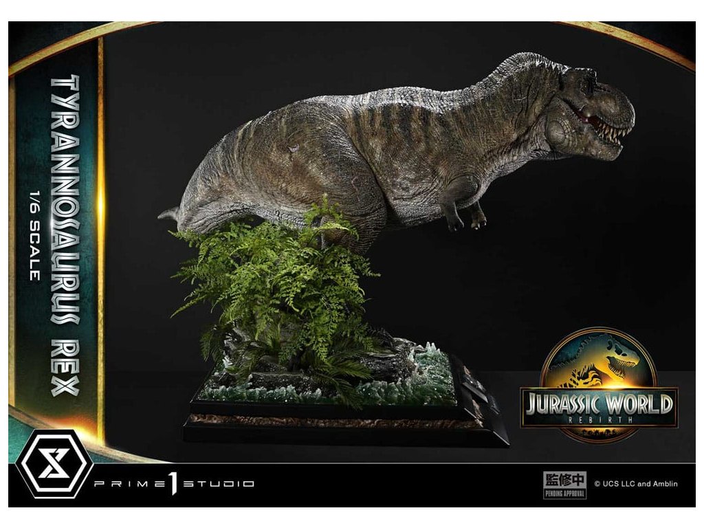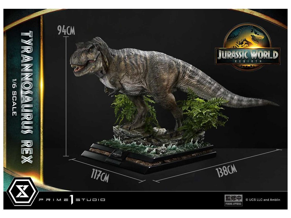 Sériový symbol dosahuje dĺžku 1,38 metra. Zúrivá čeľusť a mohutné telo - teraz vydané v mierke 1:6. Z najnovšej kapitoly kultovej "jurskej" série prichádza nový Tyranosaurus Rex, ktorý sa teraz pripája k zbierke Legacy Museum. Ostrov, ktorý bol kedysi domovom tajného výskumného zariadenia pôvodného Jurského parku, je svedkom vzostupu nového tyrana. Táto socha zachytáva jeho desivú prítomnosť prostredníctvom obrovskej mierky 1:6 - meria približne 1,38 metra. Ako jeden z vôbec najväčších dinosaurov štúdia Prime 1 táto socha zobrazuje zúfalstvo stretnutia a nevyhnutný strach z lovu nad pevninou a vodou. Veľkosť je však len začiatok. Výrazné okraje nad jeho očami. Čeľusť drviaca kosti lemovaná žiletkovými zubami vnútri realisticky vykreslenej tlamy. Svalnaté telo poznačené výraznými pruhmi. Každý detail tohto Tyranosaura Rexa - ako druhu aj ako jednotlivého živého tvora - bol verne vytesaný a namaľovaný. Je to úroveň precíznosti a prítomnosti, ktorá je na menších mierkach nemožná. Tyranosaurus Rex už dlho symbolizuje franšízu "Jurský svet". Teraz prichádza jeho najnovšia inkarnácia - podaná v neprekonateľnej veľkosti, sochárskej vernosti a majstrovskej maľbe.Dodatočné parametre