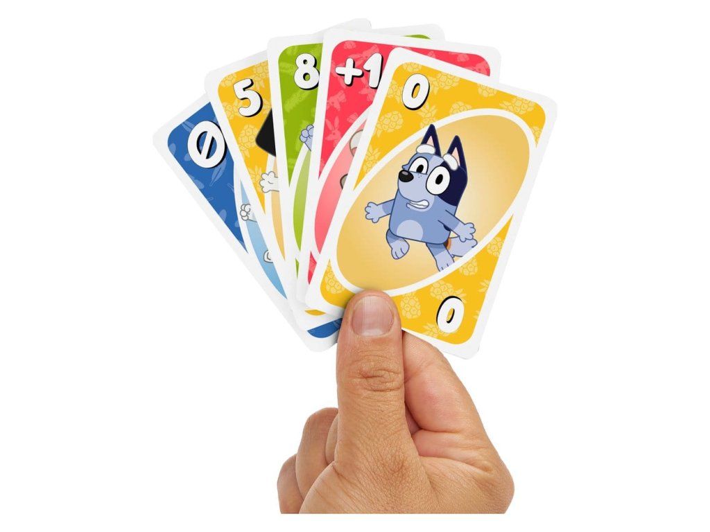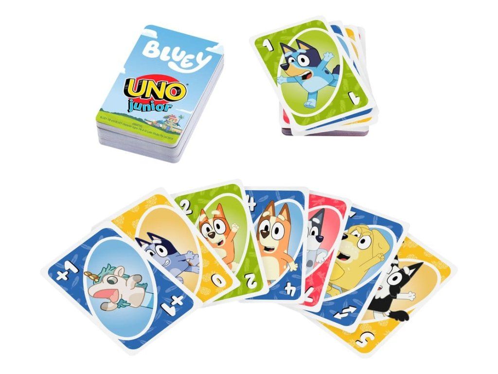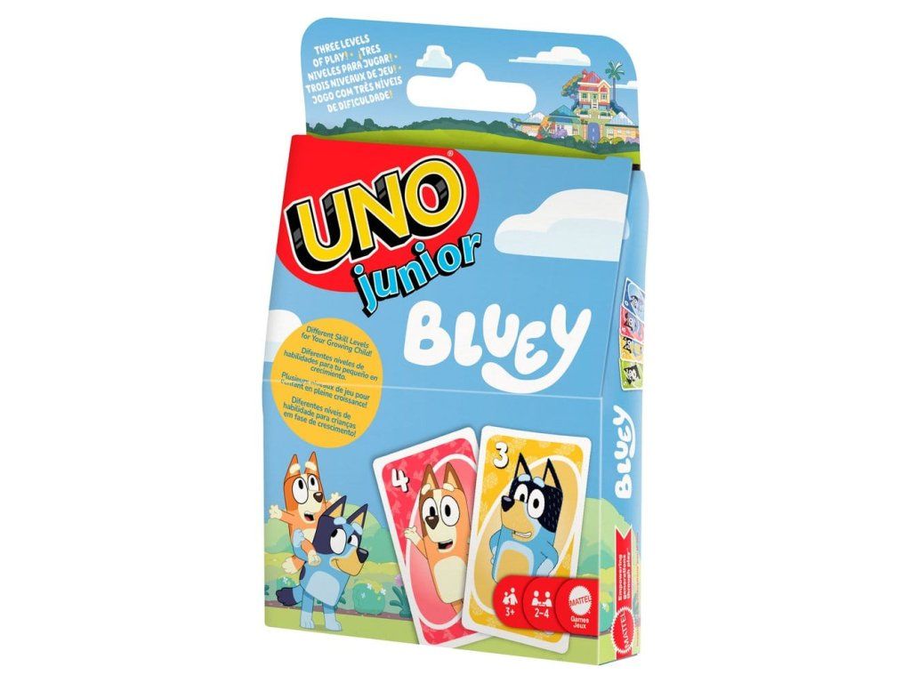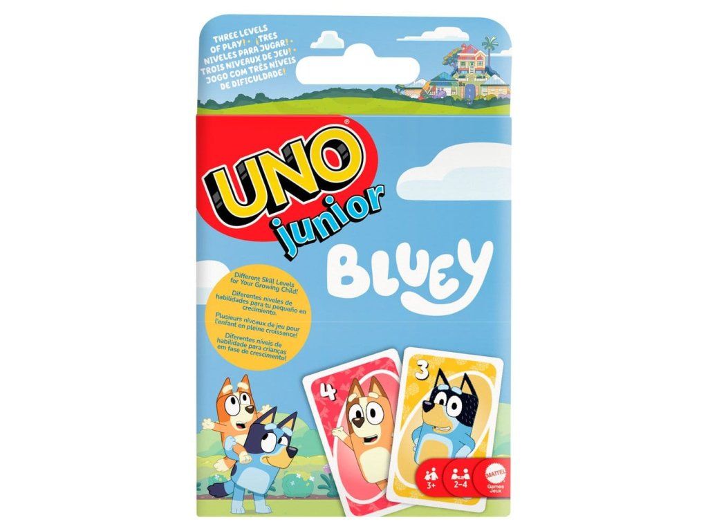 Deti si zamilujú UNO Junior s Bluey! Túto detskú kartovú hru s farebnými prvkami a postavičkami zo seriálu možno hrať na troch úrovniach obtiažnosti a počas hrania bude rásť spolu s deťmi. Hráči vykladajú karty, ktoré sa zhodujú s farbou, číslom alebo postavičkou, čo zvyšuje ich sebadôveru. Zábavný úvod do tradície rodinných večerných hier pre 2 až 4 hráčov od 3 rokov.Dodatočné parametre