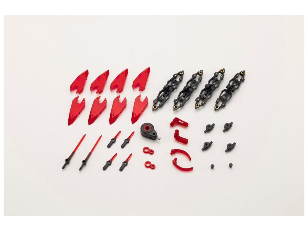 Sada prepojených jednotiek jasného brnenia zo série ťažkých zbraní je tu v úplne nových farbách!! Koncepcia tohto výrobku spočíva vo vytvorení jasného kĺbového krídlového panciera, ktorý je ideálny pre modely postáv. Nová verzia má ako hlavnú farbu čiernu a červené priesvitné časti. Diely možno zostaviť v rôznych kombináciách, napríklad v nádhernom "móde krídla" s ostrými siluetami alebo v "móde obrany" ako štít v dĺžke tela, a možno ich použiť na vytvorenie jedinečných úprav s inými stavebnicami. Priehľadná farba panciera umožňuje používateľom nahliadnuť na čierny rám vo vnútri a vytvoriť tak nádherný vzhľad tejto ťažkej zbrane. Tento výrobok bol vyvinutý v spolupráci so spoločnosťou KIKUCHI SEISAKUSHO CO., LTD. so sídlom v Hachioji v Tokiu, aby prezentoval kvalitné japonské remeselné spracovanie. O spoločnosti KIKUCHI SEISAKUSHO CO., LTD.: Kikuchi Seisakusho je "spoločnosť poskytujúca celkovú podporu výrobe", ktorá ponúka pomocnú ruku pri vytváraní nových výrobkov vo všetkých oblastiach prostredníctvom svojho balíka riešení, ktorý zahŕňa vývoj, dizajn, lisovanie, výrobu prototypov, hodnotenie a sériovú výrobu. Nesnaží sa len o efektívnosť výroby, ale jej cieľom je "vytvoriť podporný priemysel", ktorý poskytuje pomoc prostredníctvom remeselnej zručnosti. Pomocou svojej technológie a so zameraním na praktickú výrobu sa usilujú o spoločnosť, ktorá je ohľaduplná, vytvára užitočné výrobky a je plná láskavosti. Špecifikácie modelu: - Kĺbové jednotky na spájanie zväzkov (viazačov) sú kĺbové, čo umožňuje meniť uhly a vytvárať rôzne pózy a scény - Samotný zväzok (viazač) má otvárací/zatvárací mechanizmus, ktorý umožňuje vytvárať rôzne siluety - Každý zväzok (viazač) má predlžovací mechanizmus, takže používatelia môžu spájať jeden za druhým do reťaze obmedzenej len ich fantáziou! - Priložený priehľadný meč a priehľadná dýka sa dajú uložiť na druhú stranu zväzku (viazača) - 3 mm spojovacie kĺby na základni spojenia sa dajú posúvať nahor a nadol, takže sa dajú pripojiť k mnohým ďalším súpravám - Keďže samotný zväzok (viazač) má 3 mm spojovací bod, dá sa použiť s lietajúcou základňou a pripojiť v konfigurácii samostatnej jednotky. Pomocou tejto funkcie môžete vytvárať skvelé scény so zväzkami (viazačmi), ktoré sa vznášajú vo vzduchu! Súčasťou balenia sú: - zväzky (viazače) ×4 - spojovacia základňa ×1 - spojovacie jednotky ×4 - priehľadný meč ×2 - priehľadná dýka ×4Dodatočné parametre