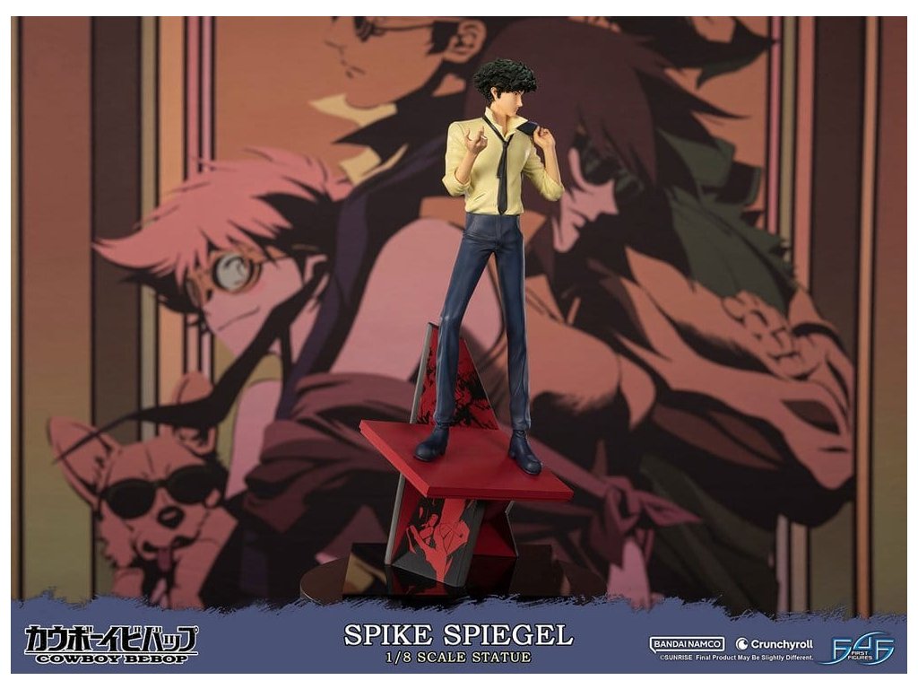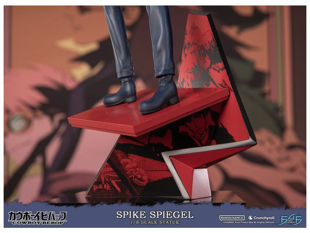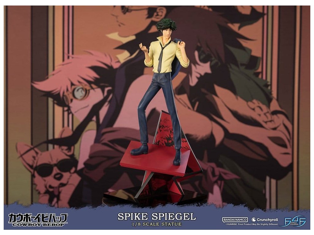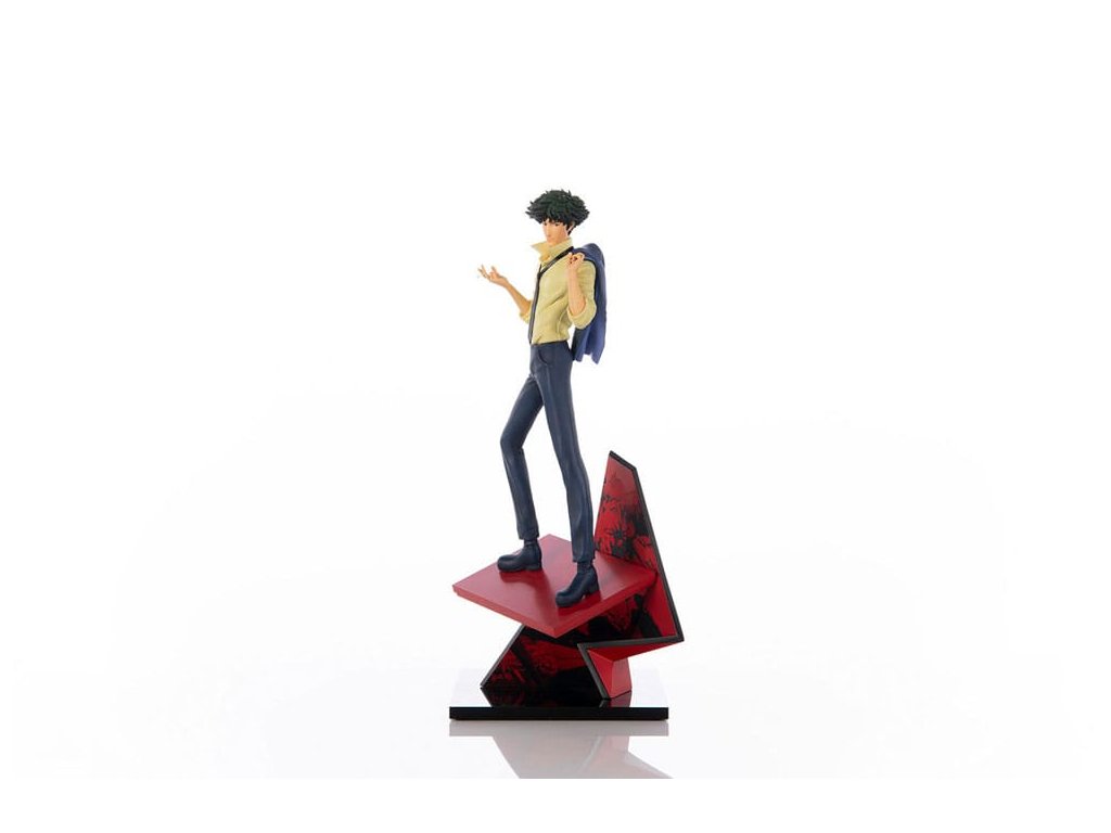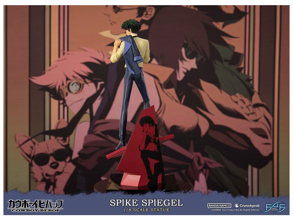 Spoločnosť First 4 Figures s hrdosťou predstavuje svoju najnovšiu zberateľskú rezinovú sochu v mierke 1:8, Spike Spiegel.COWBOY BEBOP - SPIKE SPIEGEL 1/8TH RESIN Spike Spiegel je nevzrušivý, ale skúsený lovec odmien, známy svojím lenivým šarmom, sarkastickým správaním a neprekonateľnou zručnosťou v bojových umeniach a zbraniach. Pod jeho zdanlivo ľahostajným postojom sa skrýva komplikovaná minulosť, ktorá mu dodáva chladnú, ale tragickú prítomnosť. Táto vysokokvalitná živicová socha v mierke 1/8 zobrazuje Spikea Spiegela v uvoľnenej póze, ako drží cigaretu v pravej ruke, zatiaľ čo ľavou si nonšalantne prehadzuje sako cez plece. Socha verne zobrazuje Spikeov charakteristický vzhľad vrátane jeho rozstrapatených vlasov, modrého voľnočasového obleku so žltou košeľou a vysokej, štíhlej postavy. Podstavec sochy sa môže pochváliť starostlivo vypracovaným abstraktným dizajnom, ktorý dokonale odráža ikonický výtvarný štýl úvodných titulkov filmu Cowboy Bebop.Cowboy Bebop - Spike Spiegel 1/8 Resin obsahuje:- prémiovú živicovú sochu - vysoko detailný podstavec inšpirovaný výtvarným štýlom filmu Cowboy Bebop - limitovanú edíciu s číslovaním a autentifikačnou kartourozmery: 34 x 14,5 x 14 cmDodatočné parametre