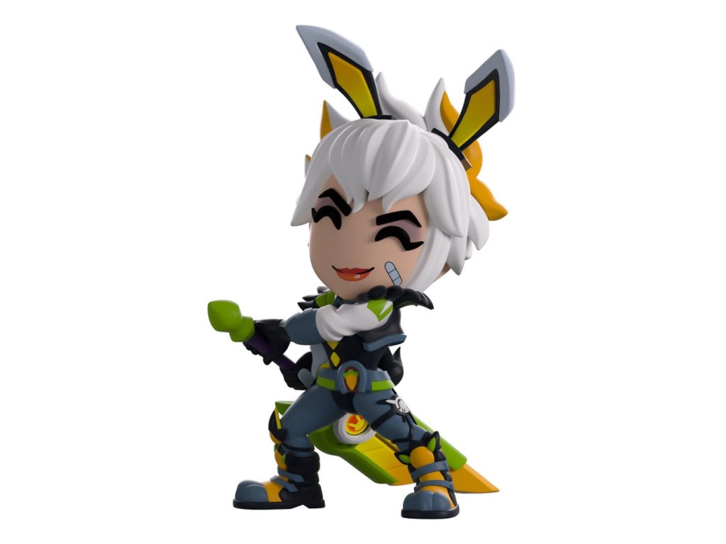 "Šťastie nemá rado hlupákov." Stojí vo výške 13 centimetrov, z hlavne žiarivo ružovej pištole, ktorú drží pri boku, sa valí sivý dym a víri jej okolo členkov, druhú pištoľ drží pred pehavou tvárou a z plných červených pier jej vychádza úsmev. Na dlhých ryšavých vlasoch zviazaných do voľného chvosta má nasadené špicaté zajačie uši, na sebe má kompletné oblečenie Battle Bunny s ružovo-fialovou mikinou visiacou z ramien a priliehavým tmavým topom, ktorý spolu s pančuchami a podpätkami prechádza do krátkej sukne, vzadu na hlave jej trčí malý chlpatý chvost. Vonkajšia strana jej bieleho obalu je pokrytá tmavofialovými bodkami a mätovo zelenými vyvýšenými obrázkami, zatiaľ čo vnútro má na svetlozelenom pozadí vzor šikmých šípok. Ochranný obal ladí s fialovými a zelenými farbami vonkajšieho obalu a jej postavu možno vidieť cez veľké priehľadné okienko na prednej strane obalu. Tento zberateľský predmet sa dodáva v matnom, reliéfnom, ochrannom vonkajšom obale a vo vlastnom plastovom chrániči na maximálnu ochranu pri preprave.O hre League of LegendsNajväčší elektronický šport na svete, League of Legends, je online multiplayerová bojová akčná hra alebo MOBA, videohra vyvinutá a vydaná spoločnosťou Riot Games, pôvodne vydaná v roku 2009, ktorá dáva hráčom pod kontrolu súpisku viac ako 160 šampiónov, ktorí bojujú proti súperovým tímom s úmyslom zničiť ich Nexus.Dodatočné parametre