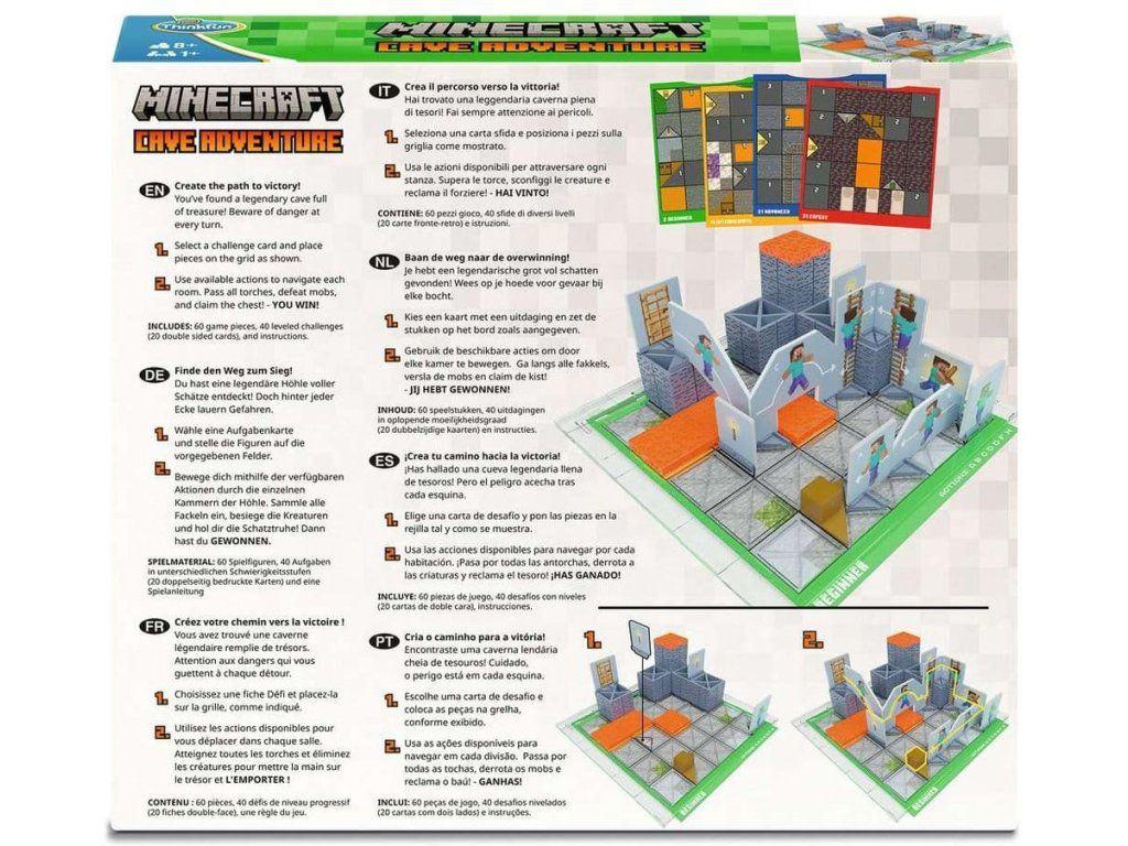 Objavte vzrušujúci svet Minecraftu - Jaskynné dobrodružstvá! Po dlhom hľadaní narazia mladí dobrodruhovia na legendárnu jaskyňu plnú pokladov. Ale pozor: nebezpečenstvo číha za každým rohom! Cieľom je vybudovať súvislú cestu jaskyňou, prejsť okolo fakieľ, poraziť príšery a dostať sa k cennej truhlici. Hra so 40 jedinečnými úlohami, strategickou hrateľnosťou a obľúbenými prvkami Minecraftu podporuje logické myslenie a poskytuje hodiny zábavy - ideálna pre fanúšikov Minecraftu a všetkých, ktorí majú radi dobré logické hry - Vek: 8+ rokov - Počet hráčov: 1- - Dĺžka hry: cca 15 min.Dodatočné parametre