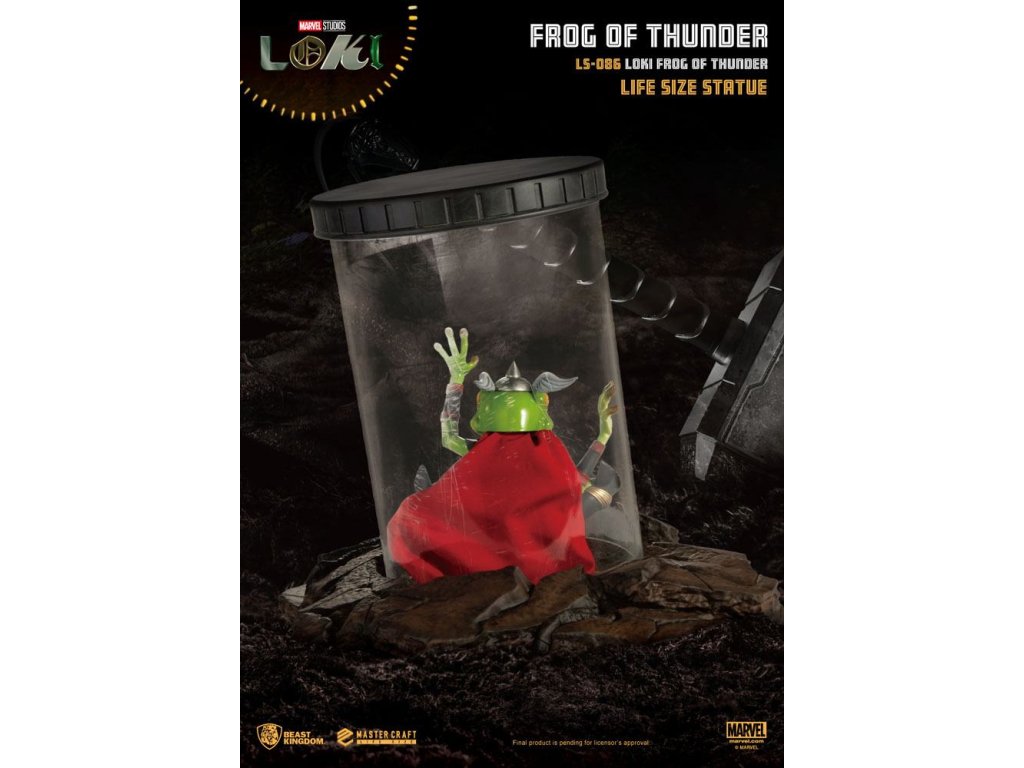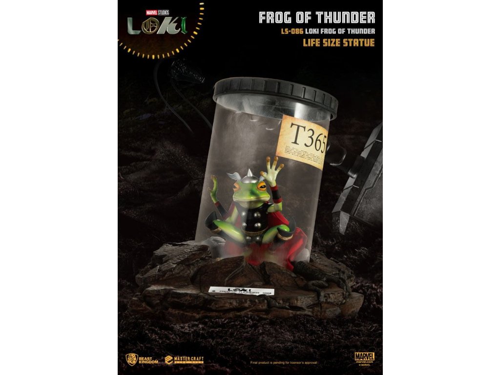 V knihe Thor #364, ktorá vyšla v roku 1986, sa fanúšikovia dočkali nového vzrušujúceho pohľadu na Thora, ktorý nikdy predtým nevideli. Thor, ktorý si stále zachováva svoje božské schopnosti, je svojím bratom Lokim premenený na malú žabu! Kletba, ktorá bola na Thora magicky uvrhnutá, ho vrhá do miniatúrnej, ale veľkolepej bitky medzi ríšami Žaby a Myši! Thor sa ako vždy chopí svojho verného kladiva a opäť zastaví Lokiho zlé plány! Značka "Zážitok z kráľovstva šeliem" je pripravená predstaviť sochu Thora, jedinečného žabieho boha blesku, v mierke 1:1! Detaily až po hladkú, svetlú žabiu kožu sú presne stvárnené. Scéna zachytáva moment, keď je Thorg uzavretý v sklenenej nádobe s povestným štítkom T365, pričom stojí na skalnatom kopci! Uistite sa, že sa vám na stôl dostane tento jedinečný pohľad na klasického, ale bizarného Thora. Limitované na 3 000 kusov.Dodatočné parametre