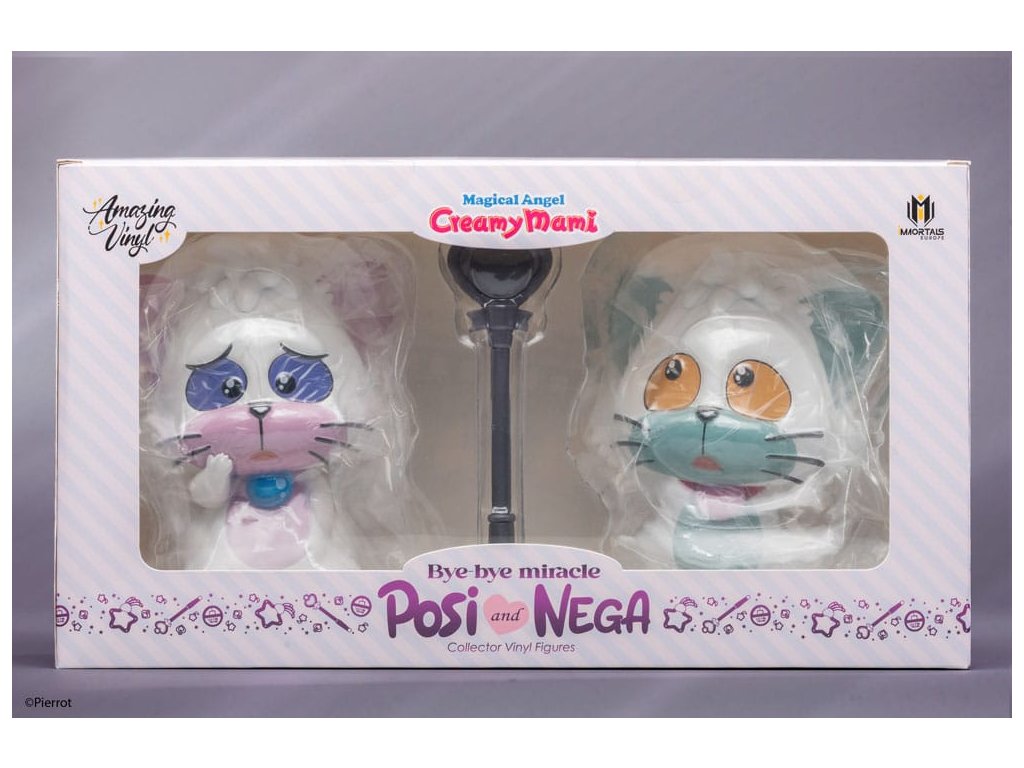 Priamo z nezabudnuteľnej 26. epizódy kultového televízneho seriálu Pierrot Magical Angel Creamy Mami sa Posi a Nega ocitnú v nezvyčajnej situácii! Balenie obsahuje - 1 holografickú zberateľskú kartu - 1 figúrku Posi - 1 figúrku Nega - 1 skamenenú čarovnú paličku. Kvalitná soška v mierke 1/1 je vyrobená z vinylu a PVC, je vysoká približne 14 cm a dodáva sa v kartónovej škatuli s potlačou. Limitovaná edícia 700 kusov.Dodatočné parametre
