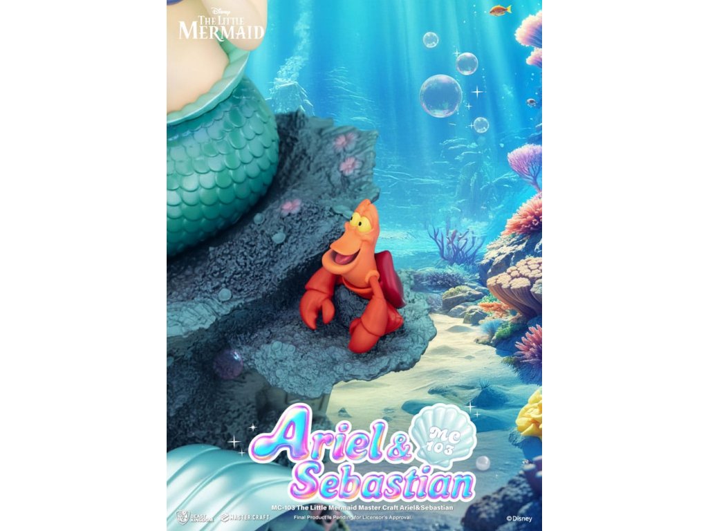 Ponor sa do čarovného podmorského sveta s obľúbenou Disneyho morskou vílou Ariel! Táto figúrka Master Craft zobrazuje klasickú scénu z Malej morskej víly, keď Ariel spieva na vrchole koralového útesu so Sebastianom po svojom boku. Vysoko verné 3D modelovanie verne stvárňuje jej rozviate červené vlasy, vrstvené šupiny na chvoste a výraznú tvár, zatiaľ čo Sebastian je vytvorený s ostrými detailmi. Ručne maľovaná povrchová úprava dodáva jej mušľovému zvršku a smaragdovému chvostu nádherný lesk, zatiaľ čo podmorský podklad - doplnený pieskom, koralmi a skrytým pokladom - dodáva bohatú hĺbku príbehu. Tento zberateľský kúsok limitovaný na 3 000 kusov na celom svete a označený individuálne očíslovanou kovovou plaketou je povinnou výbavou pre fanúšikov a nadšencov Disney. Prineste si domov tento okúzľujúci oceánsky moment a nechajte Ariel a Sebastiána naplniť váš priestor kúzlom snov a dobrodružstva. Približný dátum vydania: november 2026Dodatočné parametre