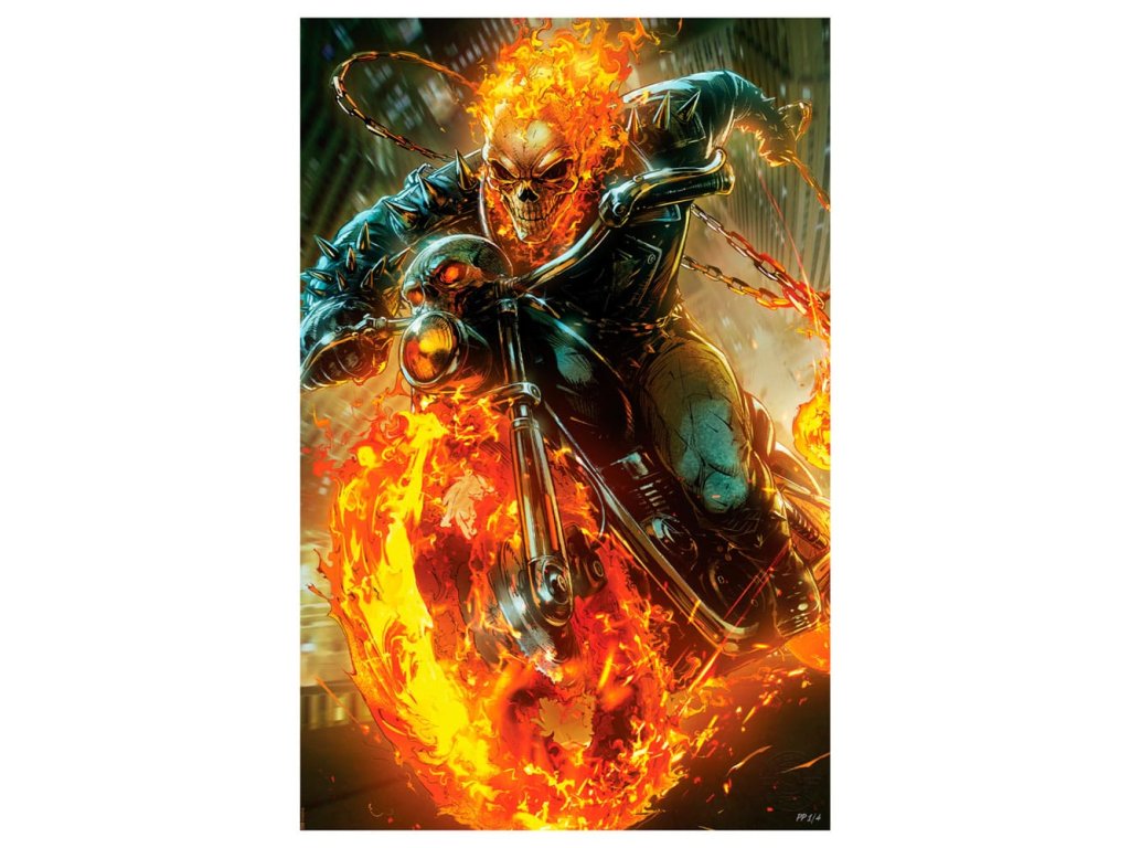 "Viac problémov, ako si dokážeš predstaviť... najmä keď je... služobníkom Satana!" Spoločnosť Sideshow predstavuje Fine Art Print Cosmic Ghost Rider, diabolskú umeleckú tlač Marvelu od umelca Maxxa Lima. Šľahajúce plamene a spálené pneumatiky znázorňujú zlovestnú cestu, počas ktorej Ghost Rider prenasleduje zlomenú dušu. Tento pekelný antihrdina, ktorý sa oháňa ohnivým reťazovým bičom, vytvára na svojej motorke desivú postavu. Cítiš vôňu kože a gumy? Všetko je v plameňoch - najmä keď ide o pomstu. pôvodne vytvorená ako variantná obálka pre Cosmic Ghost Rider #4 (2018), ktorú napísal Donny Cates pre Marvel Comics, tento Ghost Rider je teraz fanúšikom k dispozícii ako nezarámovaná Giclée tlač alebo v prezentácii na mieru. Každá Fine Art Print Cosmic Ghost Rider obsahuje reliéfnu pečať pravosti Sideshow ako súčasť limitovaného nákladu 150 kusov." Spoznajte skutočný význam pekla, keď si dnes domov prinesiete Fine Art Print Cosmic Ghost Rider od Maxxa Lima!Dodatočné parametre