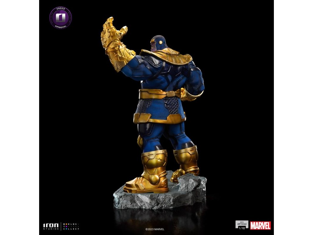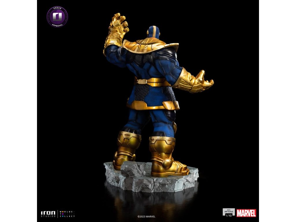 Na popraskanej podlahe odkazujúcej na chladný mramor chrámu postaveného na počesť Smrti titan ľavou rukou zdvihne svoju rukavicu s rukavicou nekonečna, pričom s týmto artefaktom určeným na uchovanie šiestich vesmírnych singularít premenených na kamene, z ktorých každý predstavuje jeden aspekt vesmíru: priestor, čas, myseľ, silu, dušu a realitu, čím sa používateľ dostáva takmer na úroveň všemohúceho. Zamilovaný do zosobnenia Smrti v podobe krásnej ženy, jeho plány zvyčajne zahŕňajú univerzálnu genocídu, aby sa predstavil svojej milovanej, ktorá je zobrazená v buste podobnej soche na podstavci vedľa neho. Šialený, večný a neodvratný, je všetkým tým a ešte niečím viac a na žiadosť fanúšikov a zberateľov spoločnosť Iron Studios s hrdosťou predstavuje sošku "Thanos - Infinity Gauntlet Diorama - BDS Art Scale 1/10", prvú z novej série zloženej z najmocnejších hrdinov na Zemi z Marvel Universe, v kolekcii, ktorá vytvorí ďalšiu úžasnú sadu bojových diorám. Iron Studios prinesie aj špeciálnu verziu "Thanos Deluxe - Infinity Gauntlet Diorama - BDS Art Scale 1/10", ktorá obsahuje detailnejší podstavec jeho paláca s bustou jeho milovanej na podstavci po jeho boku. Thanosa vytvoril v komiksoch Jim Starlin v roku 1973, teda dávno predtým, ako táto postava začala svoju krížovú výpravu za Kamene nekonečna v superprodukcii MCU, a Thanos sa už v komiksoch pod kozmickou mysľou Starlina a ďalších kultových autorov etabloval ako jedna z najmocnejších a najnebezpečnejších bytostí vo vesmíre Marvelu. Či už pri hľadaní Kozmickej kocky, alebo pri vytváraní Rukavice, predstavenej v takzvanej Ságe nekonečna, mnohé jeho plány na vyhladenie a zničenie mohli zastaviť len spojené sily veľkých superhrdinov, ako sú šampión Kree Captain Marvel, geneticky upravená dokonalá bytosť Adam Warlock, Avengers, Fantastická štvorka, Neuveriteľný Hulk, Drax the Destroyer, Amazing Spider-Man a mnohí ďalší! Kozmický superzloduch, ktorý je už k dispozícii na predobjednávky a ktorý bol odhalený počas júlového dňa Inside Iron Studios, je prvou soškou v dioráme Infinity Gauntlet, ktorá bola oznámená počas panelu Iron Studios na CCXP 2022, a čoskoro sa k tejto novej línii pridajú sošky ďalších ikonických postáv z komiksového sveta Marvelu, ktoré budú odhalené na sociálnych sieťach a kanáli YouTube spoločnosti Iron Studios. Zostaňte naladení. Rozmery: 30 x 18 x 18 cmDodatočné parametre