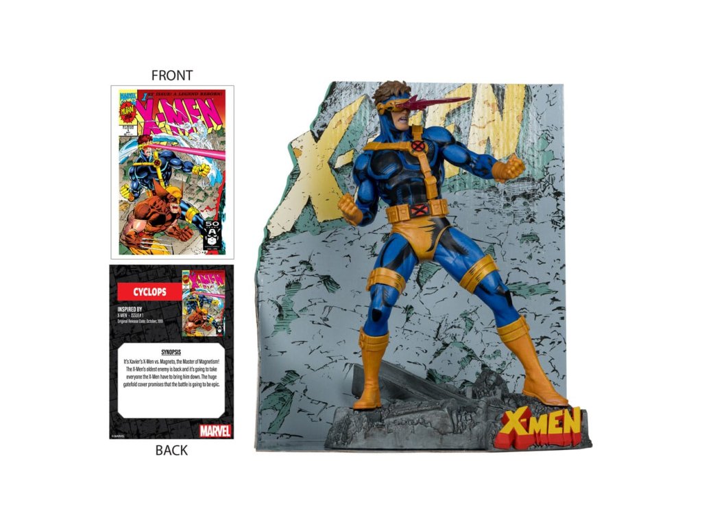 Xavierovi X-Meni proti Magnetovi, pánovi magnetizmu! Najstarší nepriateľ X-Menov je späť a X-Meni budú potrebovať všetko, aby ho zničili. Obrovská rozkladacia obálka sľubuje, že bitka bude veľkolepá - Inšpirované X-MEN #1 - Zberateľská socha v mierke 1:10 s prostredím a scénou v pozadí - Obsahuje umeleckú kartu s kresbami postáv na prednej strane a komiksové zhrnutieDodatočné parametre