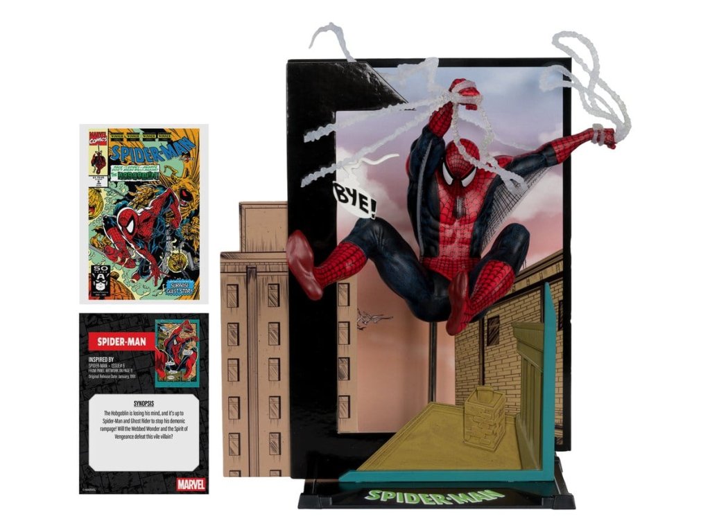 Hobgoblin prichádza o rozum a je na Spider-Manovi a Ghost Riderovi, aby zastavili jeho démonické besnenie! Dokážu zázrak s pavučinou a Duch pomsty poraziť tohto podlého zloducha?- Inšpirované knihou SPIDER-MAN ISSUE #6- Zberateľská socha v mierke 1:10 s prostredím a scénou v pozadí- Obsahuje umeleckú kartu s vyobrazením postavy na prednej strane a komiksovým obsahom- Zbierajte všetky zberateľské hračky McFarlane Toys Marvel- Rozmer: 6,95" (17,7 cm). Približný dátum vydania: február 2026.Dodatočné parametre