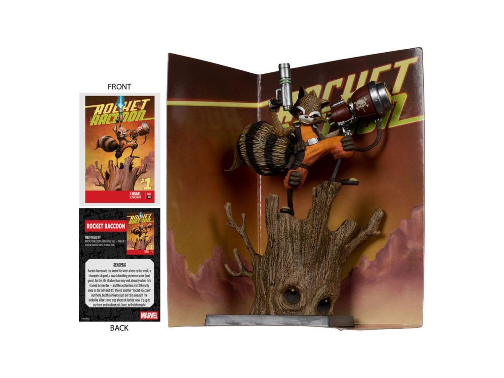 Rocket Raccoon je posledný svojho druhu: hrdina slabých, ochranca dobra, odvážny priekopník cti. Jeho dobrodružný život sa však náhle skončí, keď ho neprávom obvinia a úrady nie sú jediné, kto po ňom ide! (Chápete?) Existuje ďalší "mýval Rocket", ale vesmír jednoducho nie je dosť veľký! Jeho dvojník je vždy o krok vpred; teraz je na našom hrdinovi a jeho najlepšom priateľovi Grootovi, aby zistili pravdu! - Inšpirované komiksom Rocket Racoon: The Story of the Chase Issue #1 - Zberateľská figúrka v mierke 1:6 s prostredím a pozadím- Obsahuje reprint komiksu Rocket Racoon: The Story of the Chase Issue #1- Súčasťou je aj umelecká karta s obrázkom postavy na prednej strane a zhrnutím komiksu na zadnej strane- Zbierajte všetky zberateľské predmety McFARLANE TOYS™ MARVEL™.