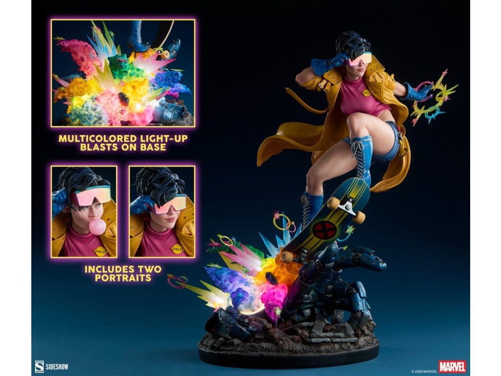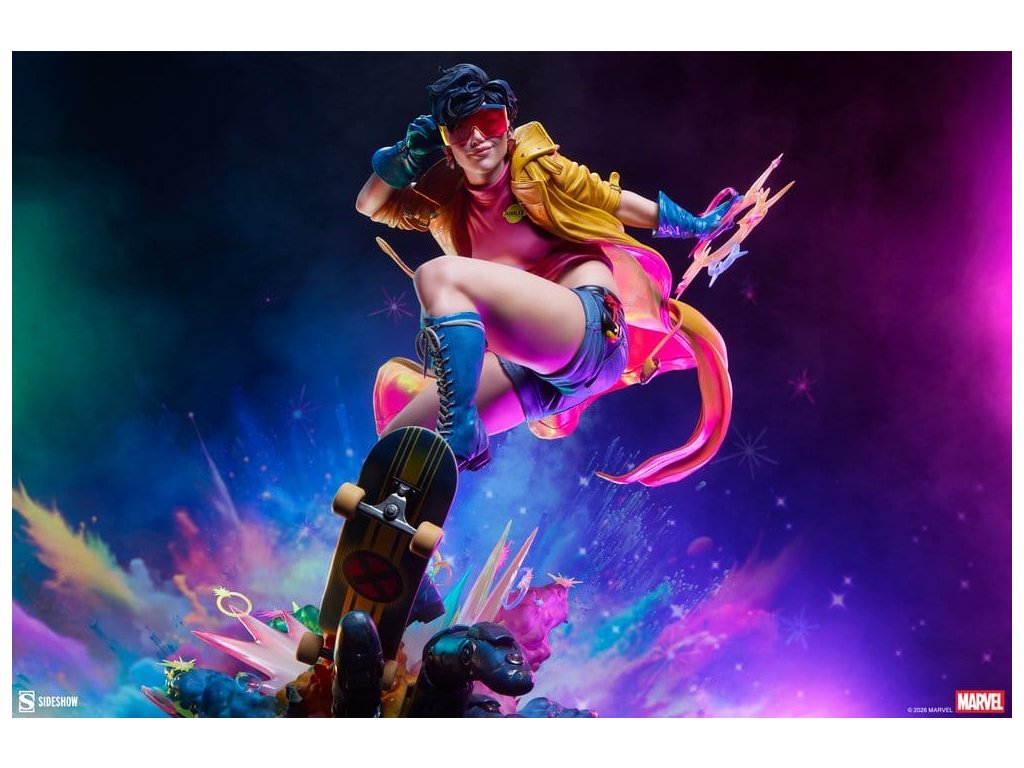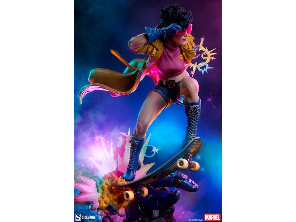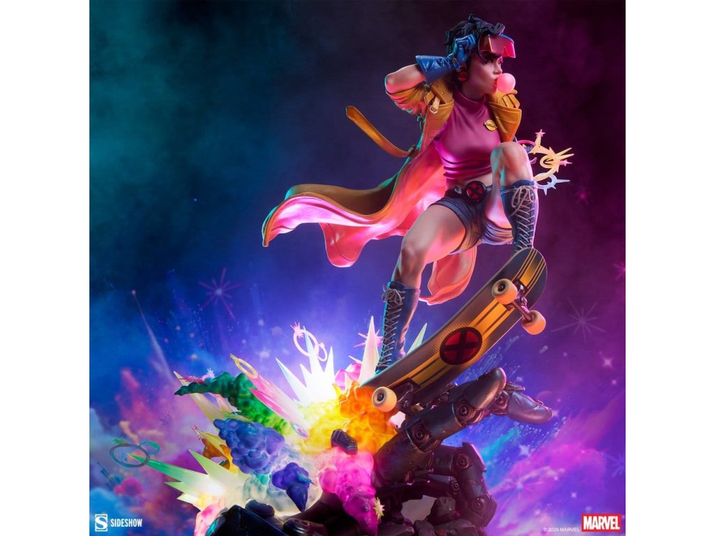 Spoločnosť Sideshow predstavuje sošku Jubilee Premium Format™, hravý zberateľský kúsok od Marvelu, ktorý je pripravený odpáliť ohňostroj na vašej obrazovke. Figúrka Jubilee Premium Format™ meria 18,5 palca (47 cm) na výšku, 16,3 palca (41,4 cm) na šírku a 13,3 palca (33,7 cm) do hĺbky, keď táto odvážna mutantka vstupuje na scénu plná farieb a charizmy. Hlasná, hrdá a nikdy sa nevzdávajúca postava Jubilation Lee drží v ruke ohňostroj v tvare hviezdy. Jubilee, trénovaná gymnastka, predvádza ollie na špecializovanom skateboarde, orámovanom supernabitými výbuchmi plazmy. Či už ide do nákupného centra, alebo bojuje so Sentinelmi, toto dievča naozaj vie, ako cestovať s gráciou. Táto plne vymodelovaná zberateľská figúrka X-Men, ktorá vychádza z podoby postavy v komiksoch Marvelu, zobrazuje Jubilee v jej lietajúcom oblečení z 90. rokov. Má na sebe žltý plášť, ružový krátky top, modré šortky, ako aj farebne zladené topánky a rukavice, a navyše kľúčenku. Štvrťročná soška Marvel obsahuje dva portréty: na jednom je zobrazená Jubilee s nadšením typu bubblegum-pop a na druhom má okuliare. Pestrofarebné výbuchy na podstavci svietia vďaka LED podsvieteniu, ktoré dodáva Jubilee ešte viac svetla. Natiahni sa, zatras, praskni s figúrkou Jubilee Premium Format™ do svojej zbierky ešte dnes! Rozmery výrobku: 47 x 41 x 34 cm Približný dátum vydania: január 2027Dodatočné parametre