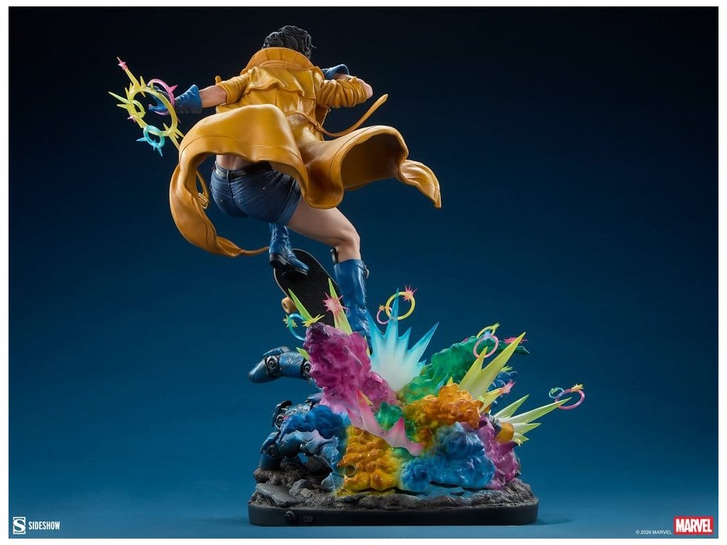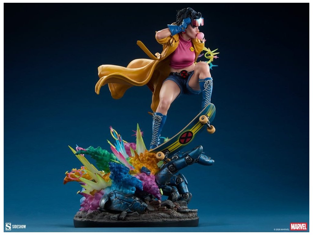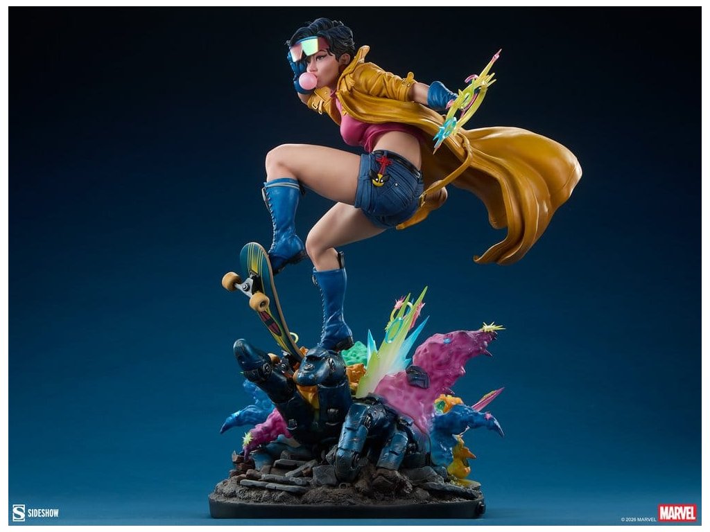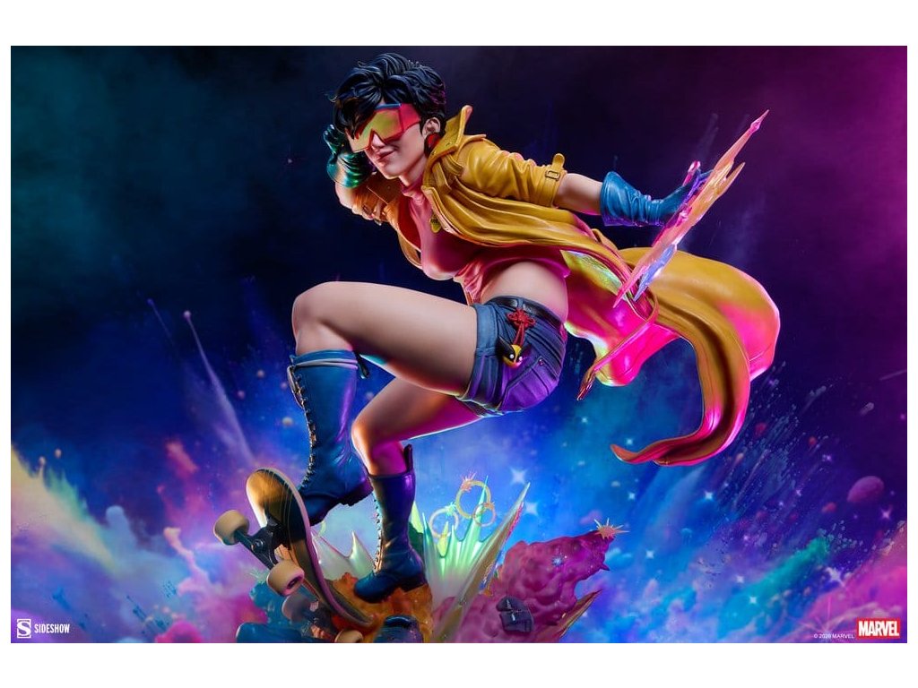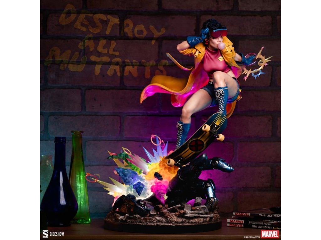 Spoločnosť Sideshow predstavuje sošku Jubilee Premium Format™, hravý zberateľský kúsok od Marvelu, ktorý je pripravený odpáliť ohňostroj na vašej obrazovke. Figúrka Jubilee Premium Format™ meria 18,5 palca (47 cm) na výšku, 16,3 palca (41,4 cm) na šírku a 13,3 palca (33,7 cm) do hĺbky, keď táto odvážna mutantka vstupuje na scénu plná farieb a charizmy. Hlasná, hrdá a nikdy sa nevzdávajúca postava Jubilation Lee drží v ruke ohňostroj v tvare hviezdy. Jubilee, trénovaná gymnastka, predvádza ollie na špecializovanom skateboarde, orámovanom supernabitými výbuchmi plazmy. Či už ide do nákupného centra, alebo bojuje so Sentinelmi, toto dievča naozaj vie, ako cestovať s gráciou. Táto plne vymodelovaná zberateľská figúrka X-Men, ktorá vychádza z podoby postavy v komiksoch Marvelu, zobrazuje Jubilee v jej lietajúcom oblečení z 90. rokov. Má na sebe žltý plášť, ružový krátky top, modré šortky, ako aj farebne zladené topánky a rukavice, a navyše kľúčenku. Štvrťročná soška Marvel obsahuje dva portréty: na jednom je zobrazená Jubilee s nadšením typu bubblegum-pop a na druhom má okuliare. Pestrofarebné výbuchy na podstavci svietia vďaka LED podsvieteniu, ktoré dodáva Jubilee ešte viac svetla. Natiahni sa, zatras, praskni s figúrkou Jubilee Premium Format™ do svojej zbierky ešte dnes! Rozmery výrobku: 47 x 41 x 34 cm Približný dátum vydania: január 2027Dodatočné parametre
