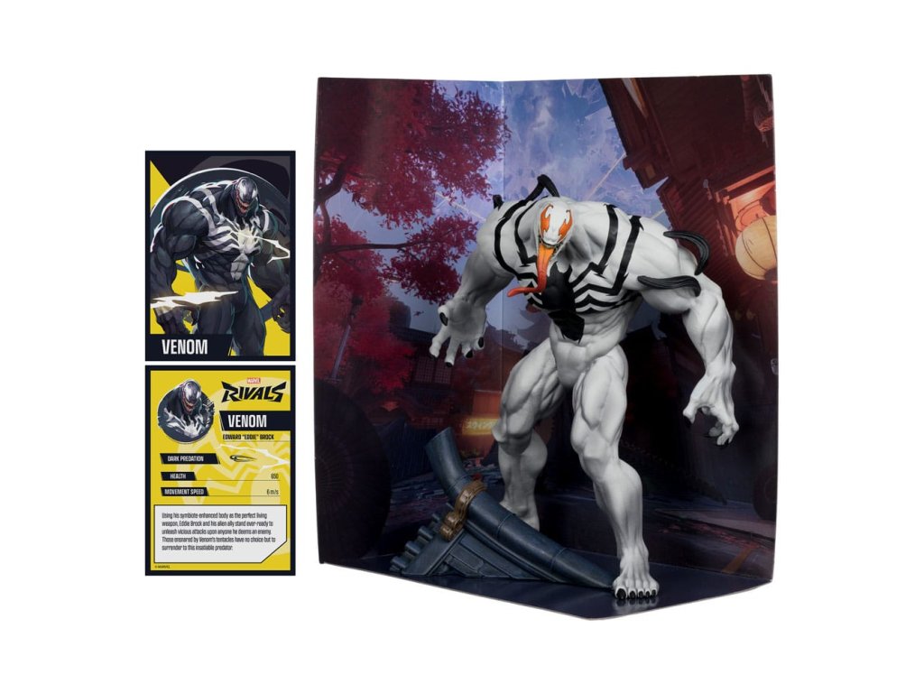 Eddie Brock využíva svoje symbiontom vylepšené telo ako ultimátnu živú zbraň a spolu so svojím mimozemským spojencom je vždy pripravený spustiť ničivé útoky na každého, koho považuje za nepriateľa. Tí, ktorí sa ocitnú v Venomerových chápadlách, nemajú inú možnosť, ako sa tomuto nenásytnému predátorovi podriadiť. - Inšpirované filmom Marvel Rivals - Kolekcia zberateľských figúrok v mierke 1:6 s prostredím a scénou na pozadí - Meria približne 24 palcov na výšku - Obsahuje komiks Marvel Rivals č. 1 - Obsahuje zberateľskú kartu s kresbami postáv - Červená platinová edícia - Zbierajte všetky kolekcie McFarlane Toys Marvel a Marvel RivalsDodatočné parametre