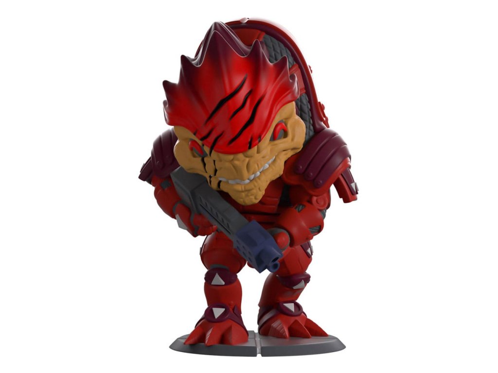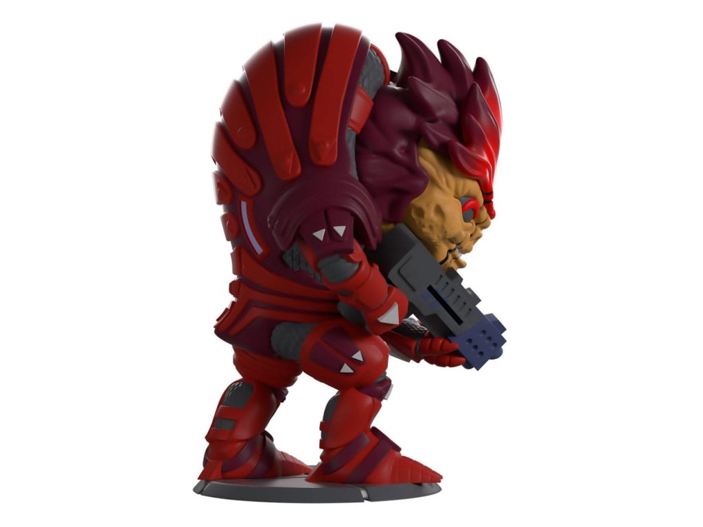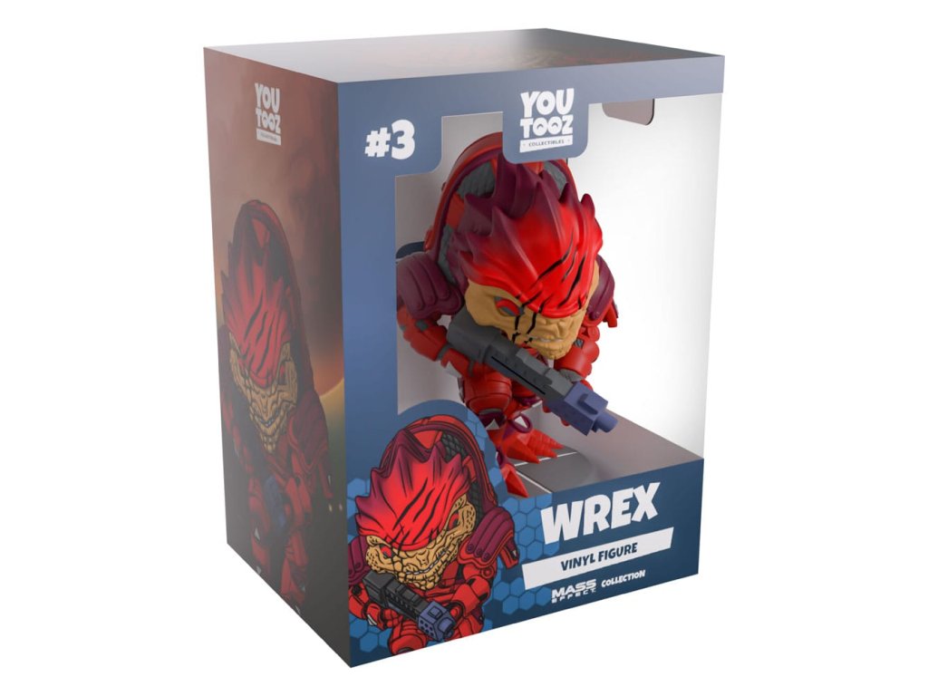 "Som Urdnot Wrex a toto je moja planéta! " Wrex nasledoval svoju novú odmenu na Youtooz! V oboch rukách drží modrú brokovnicu a nakláňa sa dopredu 4,8 centimetra vysoký, zo šupinatej hnedej tváre mu nad mierne pootvorenými ústami, kde mu červenú a fialovú hlavu pretínajú hrubé jazvy, hľadia hlboké červené oči. Oblečený je do zodpovedajúceho brnenia, ktoré mu pokrýva celé telo s hrubými plátmi a remeňmi, ktoré sa tiahnu cez plecia a hrb, sivé trojuholníky mu označujú ruky, kolená a členky, zatiaľ čo z nôh mu trčia dlhé pazúry. Na vonkajšej strane obalu je zelený stĺp vysielajúci energiu do neba. Vnútro je prísne biele s tmavomodrou farbou okolo hornej a dolnej časti, ktorá potom pokračuje na ochrannom obale, kde je možné vidieť jeho podobu cez veľké priehľadné okienko na prednej strane obalu. Tento zberateľský predmet sa dodáva v matnom, reliéfnom, ochrannom vonkajšom obale a v plastovom chrániči na mieru pre maximálnu ochranu počas prepravy. O hre Mass EffectMass Effect je séria RPG strieľačiek z pohľadu tretej osoby, ktorú vyvinula spoločnosť BioWare a vydala spoločnosť Electronic Arts. Séria sa odohráva vo vzdialenej budúcnosti, kde ľudia a mimozemšťania kolonizovali galaxiu. Vďaka pútavému príbehu a zameraniu na vzťahy, ktoré si budujete so svojou posádkou, vzniklo mnoho spin-off románov a komiksov.Dodatočné parametre
