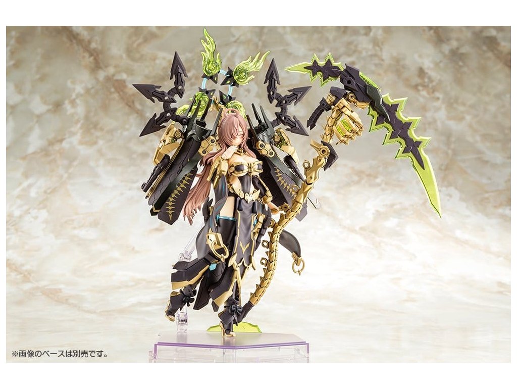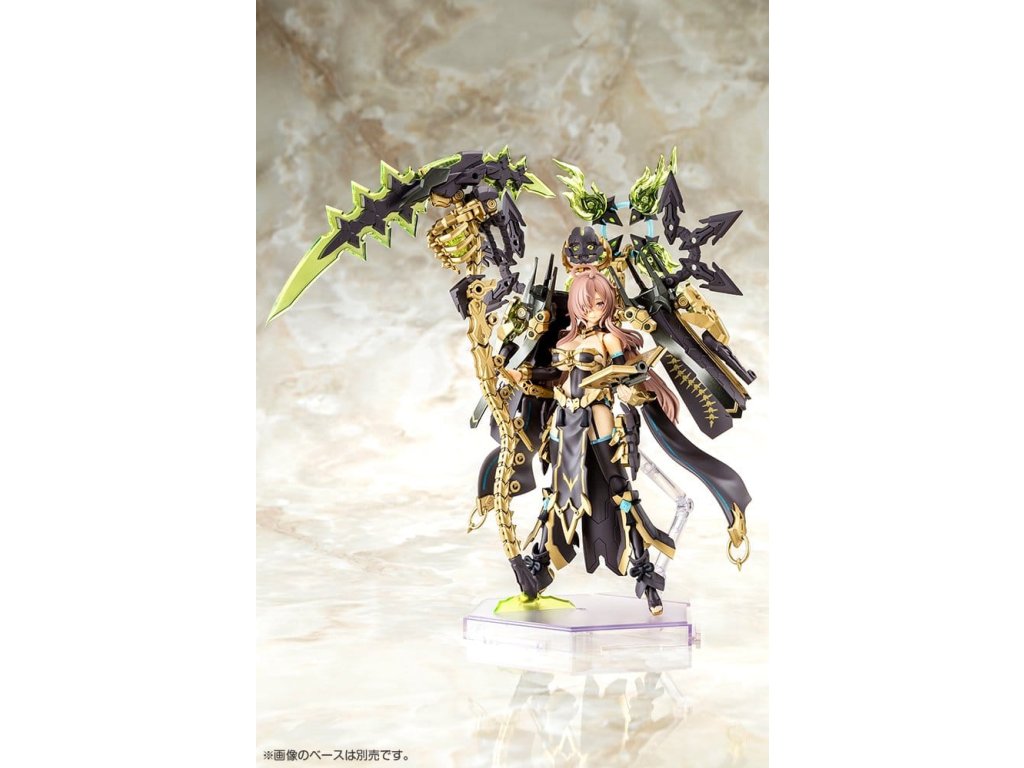 K zariadeniu Megami pribudol elegantný a nádherný variant AUV TSUKUYOMI FABULOUS!Je tu nová farebná variácia dobre prijatého modelu AUV Tsukuyomi Regalia!Na rozdiel od intenzívnej osobnosti originálu táto verzia úplne prepracovala jeho dizajn na jemnú postavu plnú súcitu.Používatelia si môžu naďalej užívať objemnú sadu zariadení a doplnkov modelu.Dizajn je prepracovaný spoločnosťou Nidy-2D-! telo stroja navrhnuté Masaki Apsym umožňuje krásne a dynamické pózy. špecifikácie modelu: - tvár, vlasy, hruď, každá časť brnenia a ďalšie časti sú navrhnuté a vytvarované pre Tsukuyomi, čo jej dodáva výraznú osobnosť, ktorá sa úplne líši od Susanowo a Amaterasu. Súčasťou sú tri novo navrhnuté predmaľované časti tváre.- Dodáva sa v štandardnej farbe pokožky A.- Každá časť jej masívnej siluety obsahuje rôzne prvky.- Veľkú kosu Tsukuyomi možno zložiť do podporného mecha, Kugutsu. Privolajte si tohto rozkošného kostlivého maskota po svojom boku.- Diely možno nakonfigurovať tak, aby sa model zobrazil v plnej zbroji pre "ozbrojený režim" alebo bez zbrane pre "neozbrojený režim".- Základné telo stroja má úžasný rozsah flexibility, vďaka čomu ho možno zobraziť v rôznych prirodzených polohách, napríklad ako drží zbraň pripravenú na boj alebo ako sedí.- Súprava obsahuje rôzne zbrane a spojovacie diely, ktoré možno použiť na vytvorenie rôznych bojových scén. Koncové body s priemerom 3 mm na každej časti a kompatibilné diely hlavy umožňujú prispôsobiť tento model existujúcim dielom sérií M.S.G, Frame Arms, Frame Arms Girl, Hexa Gear, Sousai Shojo Teien, Arcanadea a Megalomaria.- Obsahuje nálepky na oči a ďalšie označenia.Čo je to "Megami Device"?Séria Megami Device od spoločnosti Kotobukiya je rad 14 cm (5½") plastových modelov, ktoré sa dodávajú s rôznymi zbraňami a vybavením, vďaka čomu si môžete vychutnať stavbu a prispôsobenie vlastného Megami Device na použitie v robotických bitkách. Každá figúrka má hlavné telo alebo "machineca", ktoré navrhol Masaki Apsa, zatiaľ čo jedinečné brnenie a mechanika modelov sú navrhnuté v spolupráci s rôznymi hosťujúcimi ilustrátormi. stavebnice sa dodávajú s rôznofarebnými dielmi a tvárovými časťami predtlačenými tampónovou tlačou, vďaka čomu sa dajú ľahko zostaviť bez maľovania. stavebnice majú 3 mm kĺby, takže sú kompatibilné so všetkými zbraňami z radu Megami Device, ako aj s ostatnými stavebnicami plastových modelov Kotobukiya!Dodatočné parametre