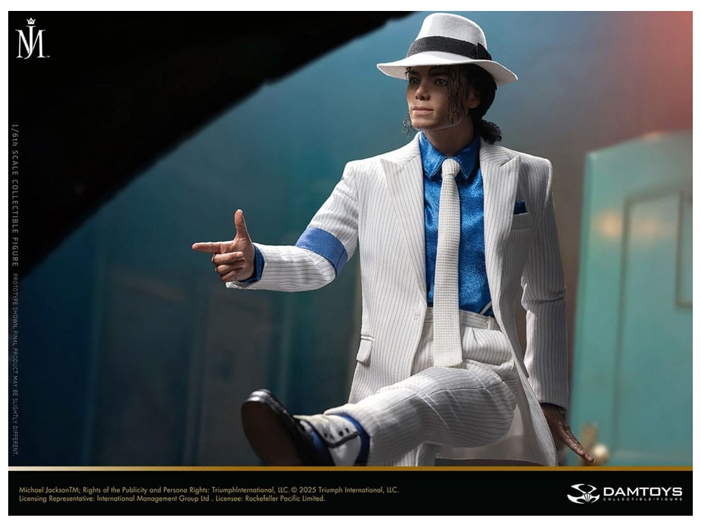 Sideshow a Damtoys predstavujú skladbu Michaela Jacksona "Smooth Criminal" (Deluxe) v šiestom meradle - poctu klasike. Výrobok obsahuje oblečenie, ktoré mal Michael Jackson oblečené vo svojom krátkom filme "Smooth Criminal". S bezchybnou reprodukciou detailov. Každý prvok, od textúry vzorov kostýmu až po vintage detaily diorámy a jukeboxu, obnovuje scénu z krátkeho filmu. Nadštandardné tvarovanie hlavy, technika implantovania vlasov, prináša klasické majstrovské dielo do reality. Spolu s technológiou pohyblivých očí a jemnou maľbou reprodukuje charakteristické črty tváre Michaela Jacksona. So slávnym "antigravitačným" javiskovým pohybom Michaela Jacksona. Táto kolekcia, ktorá prekonáva obmedzenia statických figúrok, je viac než len výstavným kúskom - evokuje dynamické napätie krátkeho filmu. Nie je to len akčná figúrka, ale umelecké dielo. Zberatelia na celom svete si môžu vychutnať tento nadčasový kúsok a pridať ho do svojej zbierky Michaela Jacksona ešte dnes!Dodatočné parametre