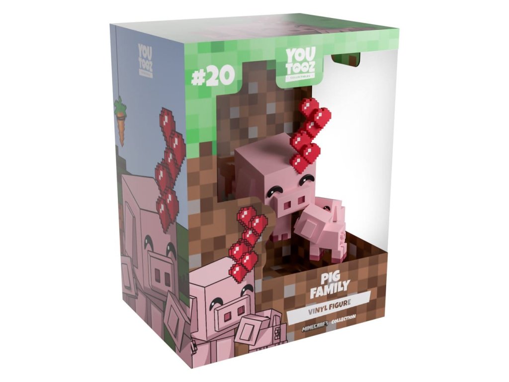 Počujete to kvílenie? Do Youtoozu sa musela vkradnúť rodinka prasiatok! Veľké prasiatko, vysoké 3,4 cm, s obláčikom červených srdiečok, ktoré mu stúpajú z ružovej hlavy, má na chrbte hnedé sedlo a pozerá sa na trojicu malých prasiatok, ktoré sa láskyplne zhlukli okolo nej a svojimi blokovými hlavičkami hľadia na svojho rodiča. Na vonkajšej strane ich obalu je vidieť skupinku prasiatok, ktoré sa hemžia okolo hromady jedla. Zatiaľ čo vnútro je obklopené hnedými blokmi zeme, tá potom pokračuje na ochrannom obale, pretože ich postavičku možno vidieť cez veľké priehľadné okienko na prednej strane balenia. Tento zberateľský predmet sa dodáva v matnom, reliéfnom, ochrannom vonkajšom obale a tvrdej plastovej vložke presne dimenzovanej na maximálnu ochranu počas prepravy. o Minecrafte: Čo viac môžeme povedať o Minecrafte, čo ešte neviete? Spoločnosť Mojang Studios vyvinula najpredávanejšiu hru všetkých čias, ktorá pôvodne vyšla pre PC v roku 2011, kde vzala svet útokom! Umožňuje vám voľne sa pohybovať v prostredí podobnom pieskovisku, kde môžete podľa ľubovôle stavať, ťažiť a skúmať, a dodnes si drží pevnú pozíciu vďaka neustálym aktualizáciám, módom a samozrejme extrémnej oddanosti svojej komunity! Predbežný dátum vydania: september 2026Dodatočné parametre