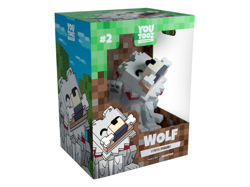 Zberateľský kúsok: Stojí 4 palce vysoký s hravo vztýčenou zadnou labkou, ktorá ho škrabe na naklonenej hlave, ktorá sa pozerá nahor, a v ústach drží triumfálne žiarivo bielu kosť. Okolo hlavy má dokonalú sivú hrivu, ktorá ladí so špicatými ušami, zatiaľ čo na krku má žiarivo červený obojok a okolo boku sa mu vinie dlhý chvost. Na obálke je zobrazený vlk sediaci uprostred vysokých stromov lesa, zatiaľ čo sa dve malé vlčatá veselo hrajú. Vnútro je obklopené hnedými blokmi, ktoré pokračujú na ochranný kryt s veľkým priehľadným okienkom na prednej strane obalu. Tento zberateľský predmet sa dodáva v matnom, reliéfnom, ochrannom vonkajšom obale a plastovom chrániči veľkosti pre maximálnu ochranu počas prepravy. O hre Minecraft: Čo vám môžeme povedať o hre Minecraft, čo ešte neviete? Spoločnosť Mojang Studios vytvorila najpredávanejšiu hru všetkých čias, ktorá bola pôvodne uvedená na PC v roku 2011 a okamžite si získala svet! Hra, ktorá vám umožňuje voľne sa pohybovať v sandboxovom prostredí, kde môžete stavať, ťažiť a objavovať podľa vlastného uváženia, si dodnes drží pevnú pozíciu vďaka neustálym aktualizáciám, módom a samozrejme extrémnej oddanosti komunity!Dodatočné parametre