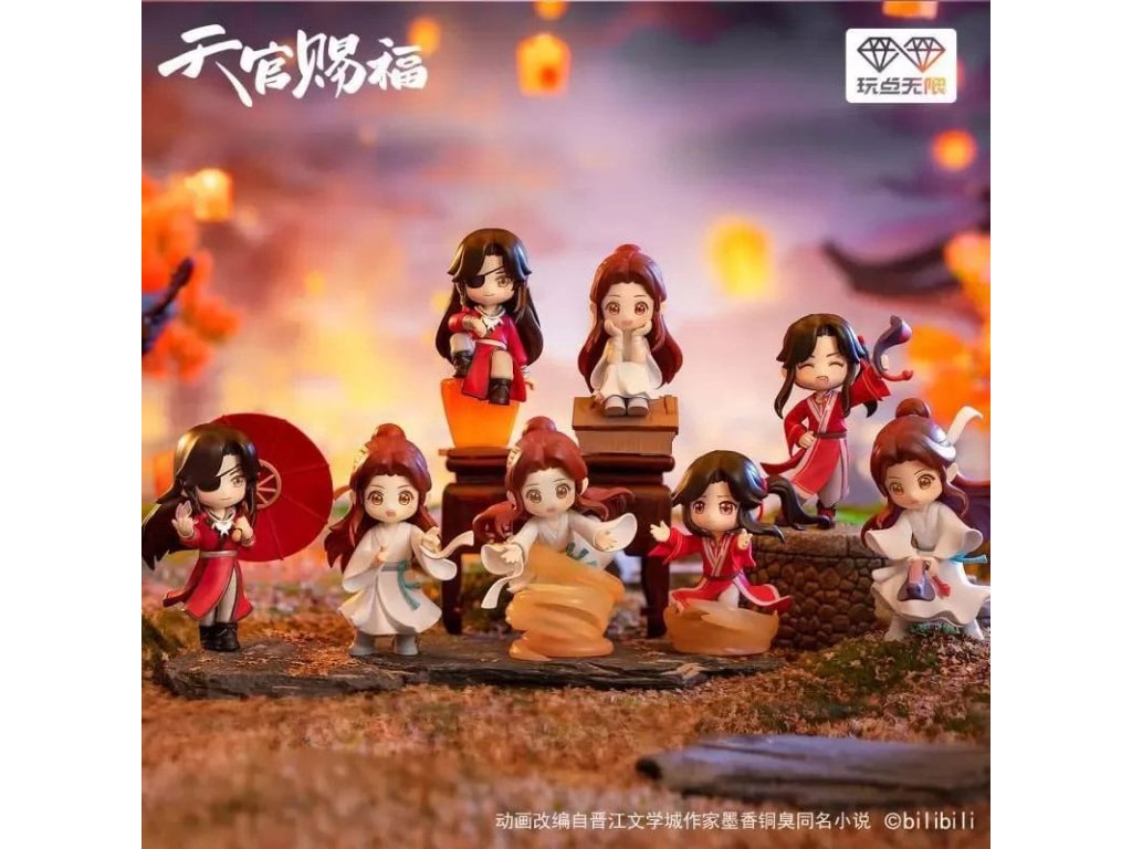 Roztomilé vreckové figúrky z knihy "Heaven Official's Blessing". Každá minifigúrka z PVC je 9 cm vysoká a dodáva sa so stojanom.