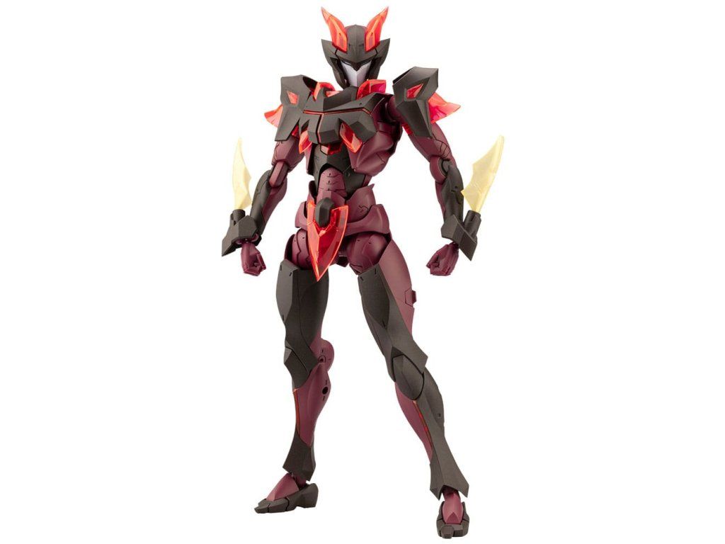 Šiestou postavou v sérii MEGALOMARIA UNLIMITED UNIVERSE je Mefisto, žiadaná prvá postava s mužským telom. Model s pôsobivými 54 pohyblivými bodmi je vysoký 180 mm. Funkcia pohyblivých častí: Mephisto má približne 54 pohyblivých bodov po celom tele. Kolenný kĺb s novým ohybom holene pozostáva z jednej vrstvy kĺbov a dá sa ohnúť dovnútra natoľko, aby model mohol sedieť v seize, s nohami zloženými pod sebou. Nový kĺb prstov na nohách umožňuje aj agresívnejšie postoje. Kolenný pancier sa môže pohybovať samostatne a možno ho nastaviť do požadovanej polohy. Ramená sa skladajú z viacerých kĺbov a možno ich natiahnuť dopredu, aby sa vytvorila poloha so skríženými ramenami. Trojbodové zápästné kĺby: zápästie je navrhnuté tak, aby sa ohýbalo dovnútra o takmer 180 stupňov, čo umožňuje vyniesť pevný bod dopredu. Mefisto má väčšie kĺby ako postavy ženského štýlu tela, ako je Principal, čo Mefistovi umožňuje držať väčšie a silnejšie zbrane. Bežné zápästné kĺby a medzikĺb sa môžu používať voľne podľa preferencií. Ruky: Sada obsahuje sedem typov rúk. Patria medzi ne ruky určené na držanie mečov, držanie zbraní, ako aj zaťaté päste a niekoľko otvorených rúk. Farebná schéma: Model používa šesť farieb: tmavočervenú, čiernu, červenú priehľadnú, svetlosivú, modrú priehľadnú (čiastočne priehľadnú) a zlatú (čiastočne priehľadnú). Dodávané položky:- 1 x model Mefista- 1 x zápästné čepele (ľavá a pravá)- 1 x sedem typov častí rúk- 1 x bedrový pancier s 3 mm kĺbom kompatibilný s letovou základňou- 1 x štandardný zápästný kĺb a medzipancier (ľavý a pravý)- 1 x jednodielny zadný pancier.Dodatočné parametre