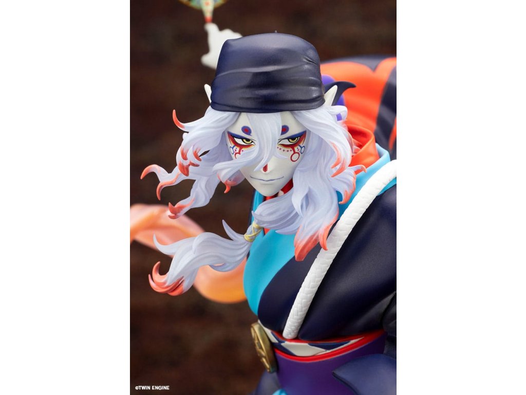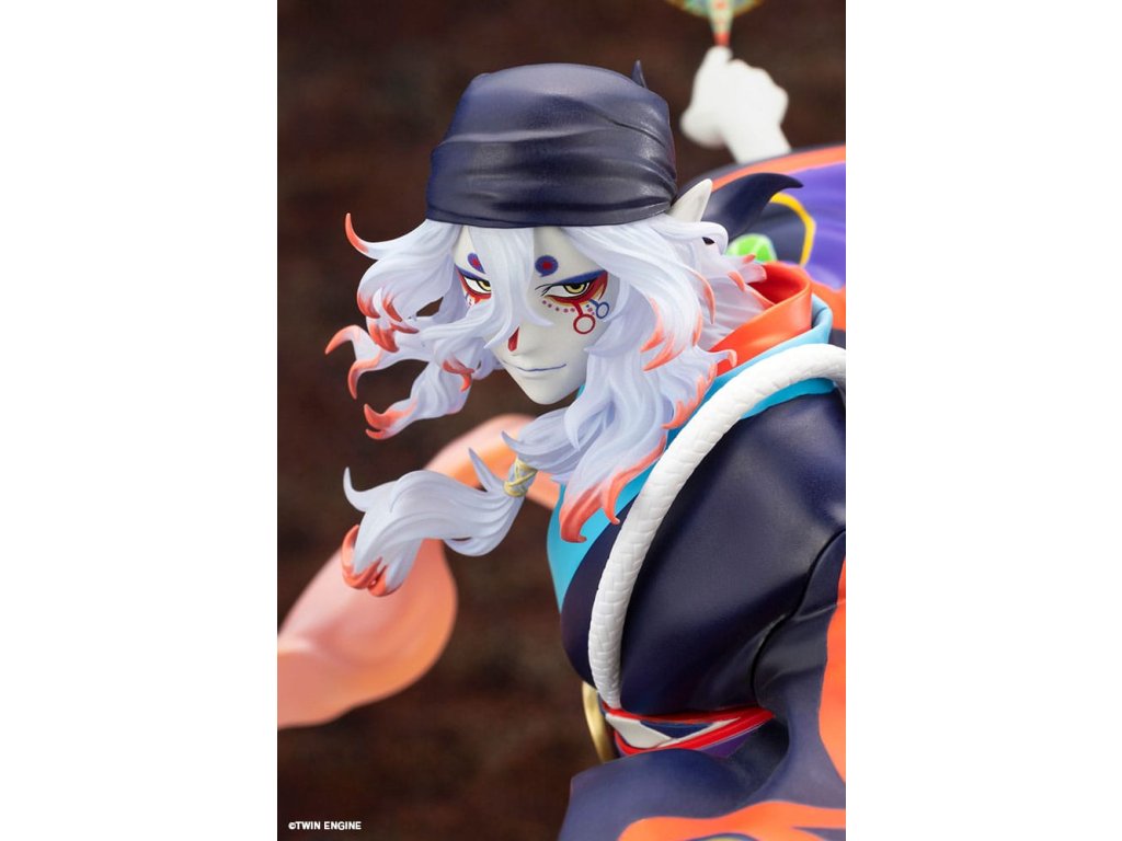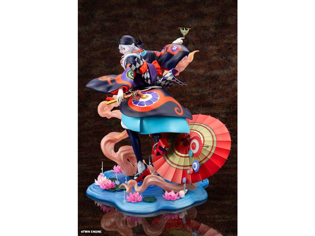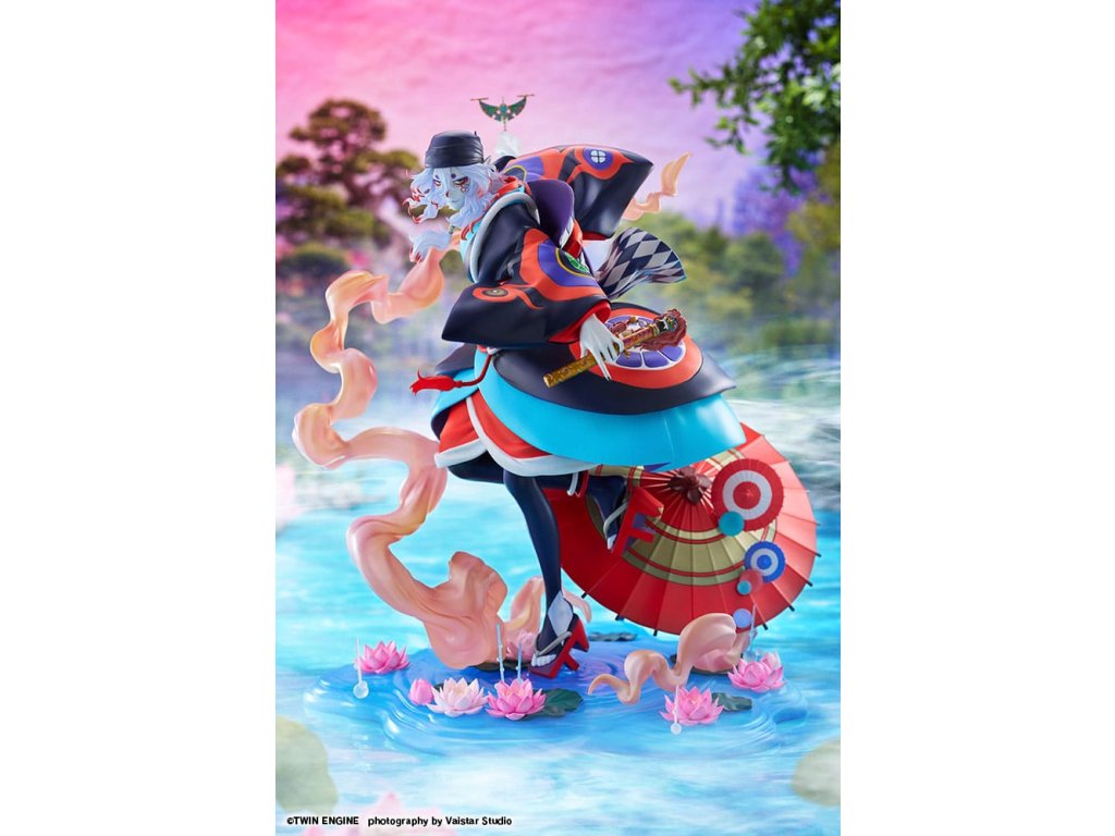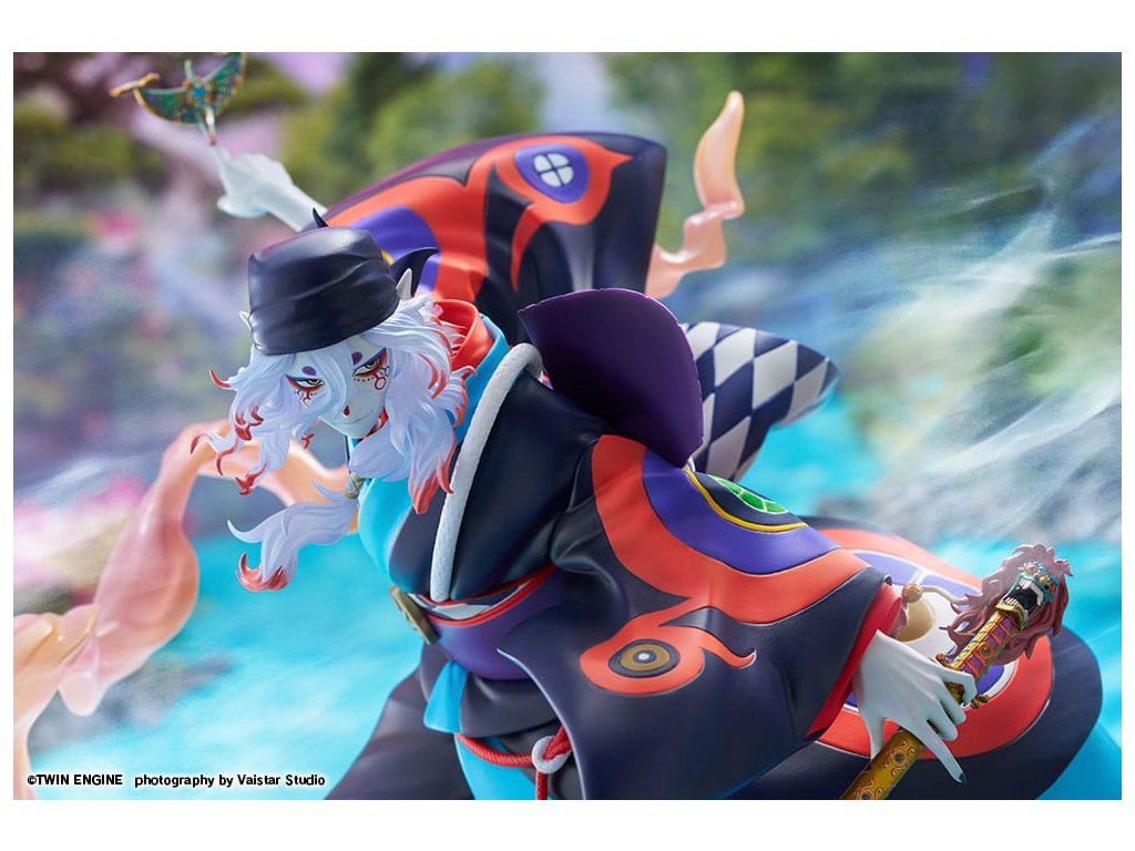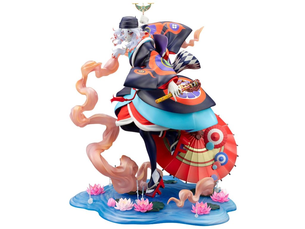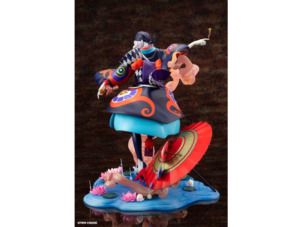 Z filmu Mononoke: Prízrak v daždi sa do radu figúrok pridáva tajomný predavač liekov. Je zobrazený v momente, keď sa stretáva s Mononoke, pripravený ho vyhnať. Jeho vlajúce vlasy a realistický výraz kimona vtiahnu diváka do dynamickej atmosféry. V ľavej ruke drží svätý meč na vyhnanie Mononoke, zatiaľ čo na prste pravej ruky má jemne vyvážené meradlo na meranie vzdialenosti medzi nimi. Každý detail bol starostlivo vymodelovaný. Podstavec s motívom vody je naplnený prvkami z filmu, ako sú lotosové kvety, oblaky, papierový dáždnik a efekty evokujúce dážď, čo vytvára nádherný finálny vzhľad, ktorý by nemal chýbať žiadnemu fanúšikovi. Venujte pozornosť výraznému náteru, ktorý dokonale stvárňuje ikonické, žiarivé farby, ktoré dodávajú filmu jeho charakteristický vzhľad. Tento predmet musí mať každý fanúšik filmu Mononoke: Prízrak v daždi, pridajte si ho do svojej zbierky ešte dnes!Dodatočné parametre