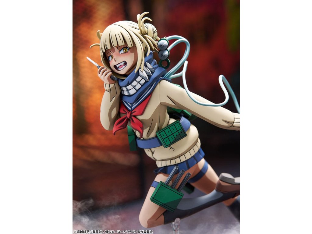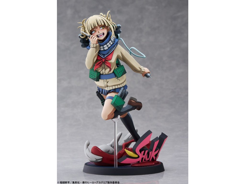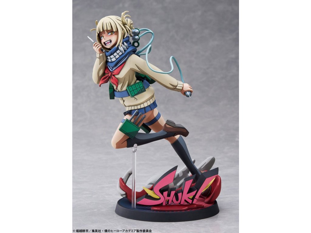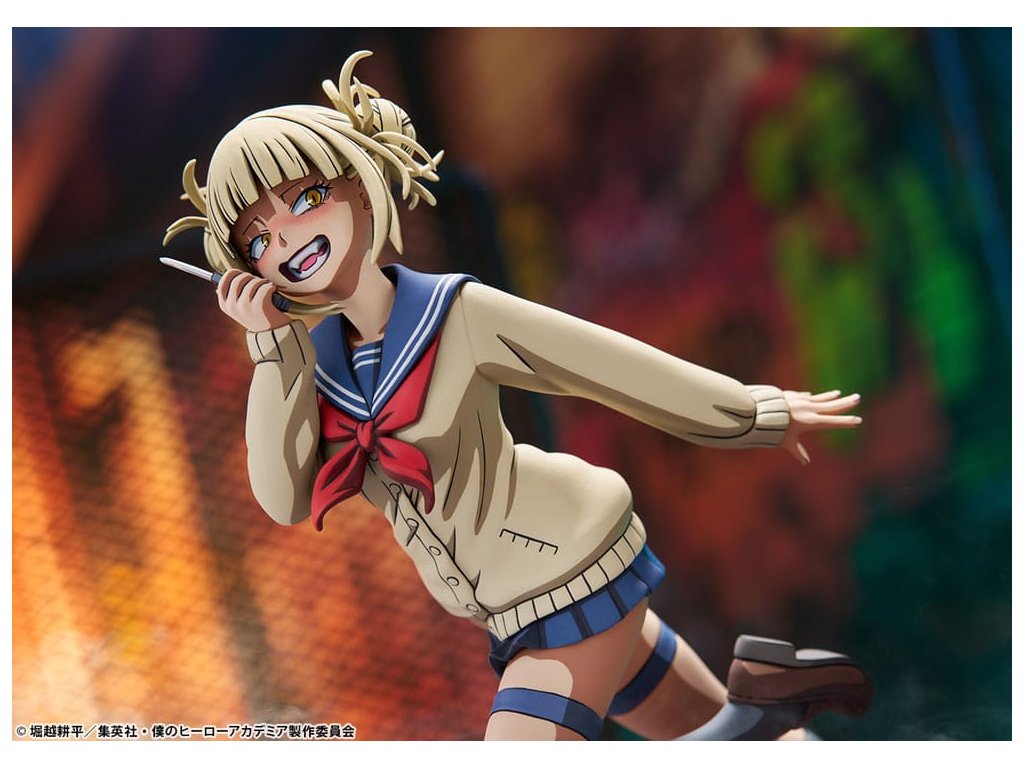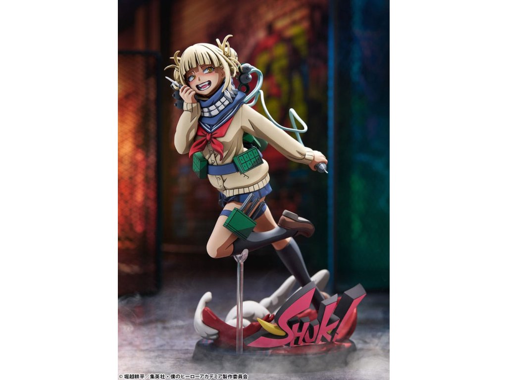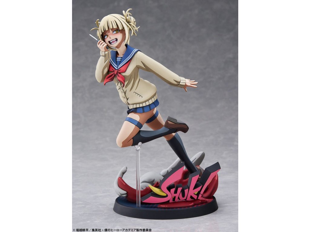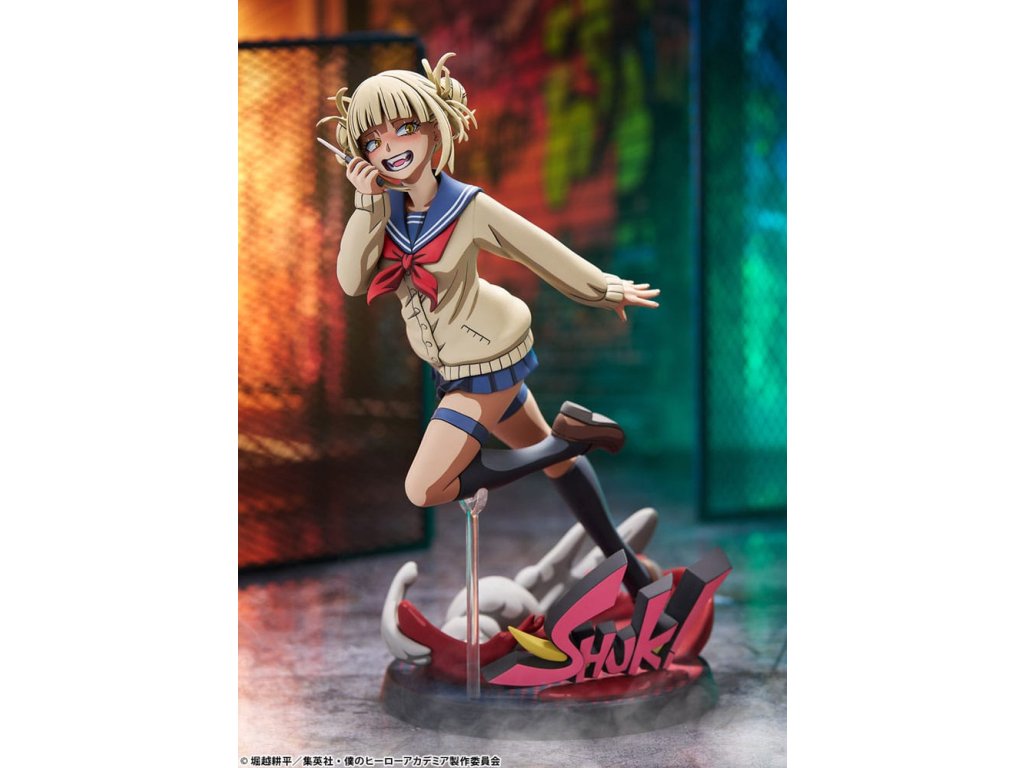 Z televízneho anime "My Hero Academy" sa zloduch "Himiko Toga" objavuje v špeciálnom 2D sfarbení! Na základe obrazu scény, v ktorej sa aktivuje jej transformačný "gadget", sú časti zbraní, ako napríklad striekačka na ťahanie krvi a nôž, verne reprodukované do najmenších detailov. Tieto časti zbraní možno podľa ľubovôle odstrániť. Okrem toho sú na podstavci umiestnené efektné časti pripomínajúce krv a spolu s trojrozmerným zvukovým efektom "SHUK!" vám tieto prvky umožnia ešte hlbšie precítiť svet diela. Toto majstrovské dielo vám umožní naplno si vychutnať diabolský pôvab "Himiko Toga", zobrazený v dvojrozmernom sfarbení, akoby to bola scéna vystrihnutá z anime. Príďte a zažite tento svet zblízka.Dodatočné parametre