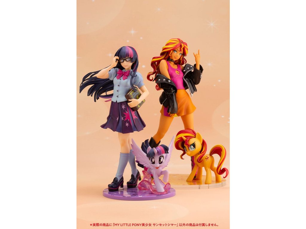 Bývalá žiačka princeznej Celestie, Sunset Shimmer, ktorá utiekla z Canterlotu a vydala sa vlastnou cestou, sa teraz pripája k línii MY LITTLE PONY BISHOUJO! Sunset Shimmer je veľmi obľúbená postava, ktorá si získala srdcia fanúšikov MY LITTLE PONY od svojho prvého vystúpenia v MY LITTLE PONY: EQUESTRIA GIRLS. Táto soška verne kopíruje pôvodný dizajn postavy, od charakteristicky sfarbených vlasov až po detaily pri reprodukcii jej siluety. Rovnako ako predchádzajúce sošky MY LITTLE PONY BISHOUJO, ktoré boli predtým vydané, riasy poníka dodávajú celej soške veľa života. Sunset Shimmer je zobrazená v jazdeckej bunde s nebojácnym úsmevom na tvári. Je toto vyobrazenie Sunset Shimmer pred tým, ako sa dozvedela o kúzle priateľstva? Alebo možno zobrazuje Sunset Shimmer po tom, čo sa naučila o "priateľstve". To už nechávame na vašej fantázii! Nezabudnite túto sošku umiestniť vedľa Twilight Sparkle a princeznej Celestie a rozšíriť tak svet MY LITTLE PONY. * Táto reprodukcia bude mať inú cenu ako pôvodná verzia.Dodatočné parametre