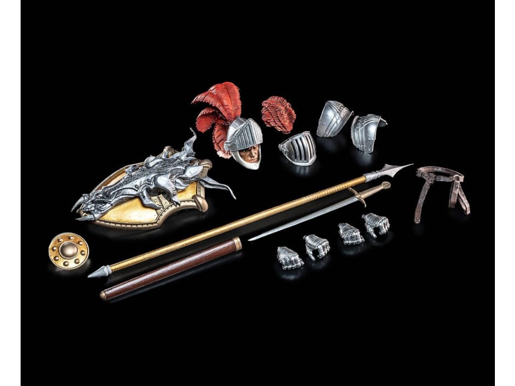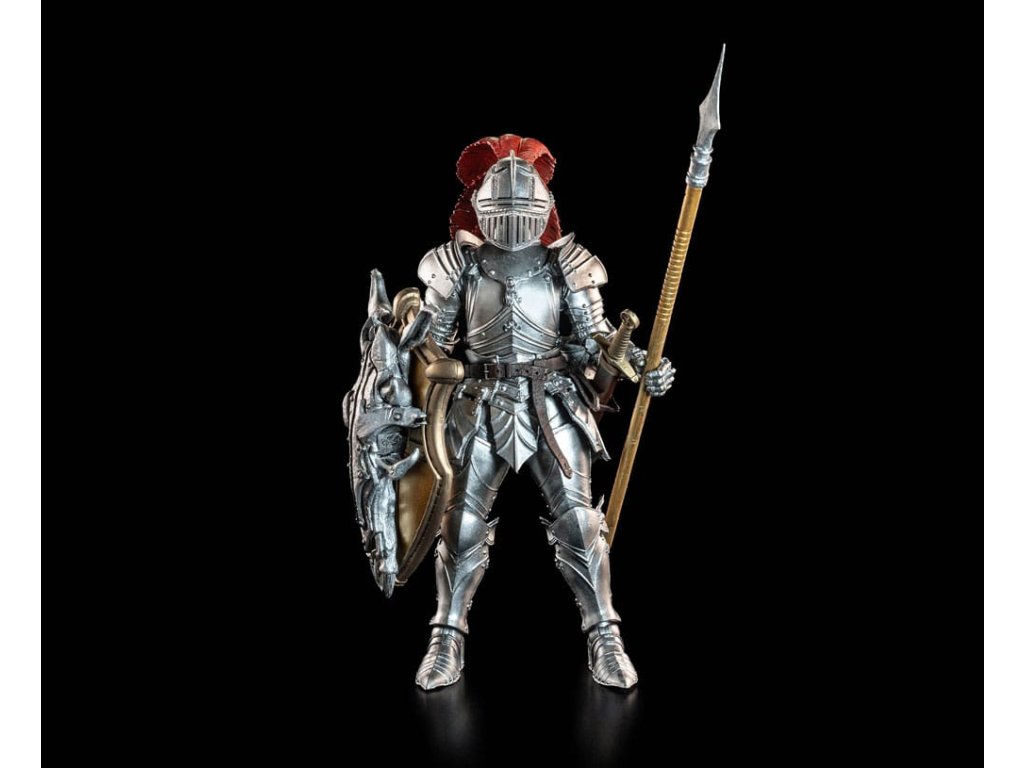 Táto figúrka obsahuje sadu odnímateľných prilieb a škrtiacich prilieb, prídavné ruky, odnímateľné ramenné brnenie, meč s pošvou, kopiju a veľmi špeciálny doplnok - konský štít. Táto figúrka ponúka "aktualizovaný rozsah pohybu", ktorý sme prvýkrát videli na našej figúrke Statočného rytiera!!! Hoci sú sily Eathyrossu najčastejšie známe vďaka Rádu templárov alebo svätým paladinom a bojovým kňazom, ktorí bojujú v mene Korunovaného orla, sú to práve početné rady Strieborných rytierov, ktorí tvoria prednú líniu armády Rádu Eathyrossu. Statoční vojaci, ktorí zložili posvätnú prísahu chrániť Ríšu, sú prvou obrannou líniou proti nesmrteľným hrôzam, ktoré sa valia z Domu požehnaných kostí.Dodatočné parametre