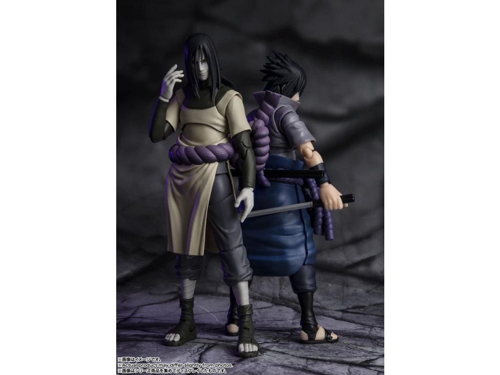 Orochimaru z "NARUTO -SHIPPUDEN-" sa pripája k S.H.Figuarts. Obsahuje príslušenstvo, ako napríklad meč Kusanagi a skryté hadie ruky, ktoré vám umožnia stvárniť vaše obľúbené scény. Obsahuje aj hlavu S.H.Figuarts Sasuke Uchiha-Ninja Prodigy z klanu Uchiha Bloodline (bonusové diely)! Obsah sady: Hlavné telo, tri voliteľné výrazy, päť párov voliteľných rúk, krížová ruka, meč Kusanagi, voliteľná hadia ruka, hlava S.H.Figuarts Sasuke Uchiha-Ninja Prodigy of the Uchiha Clan (bonusové diely).Dodatočné parametre