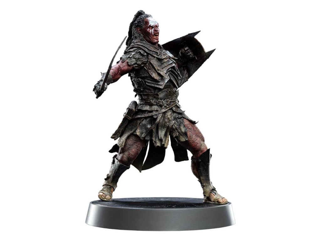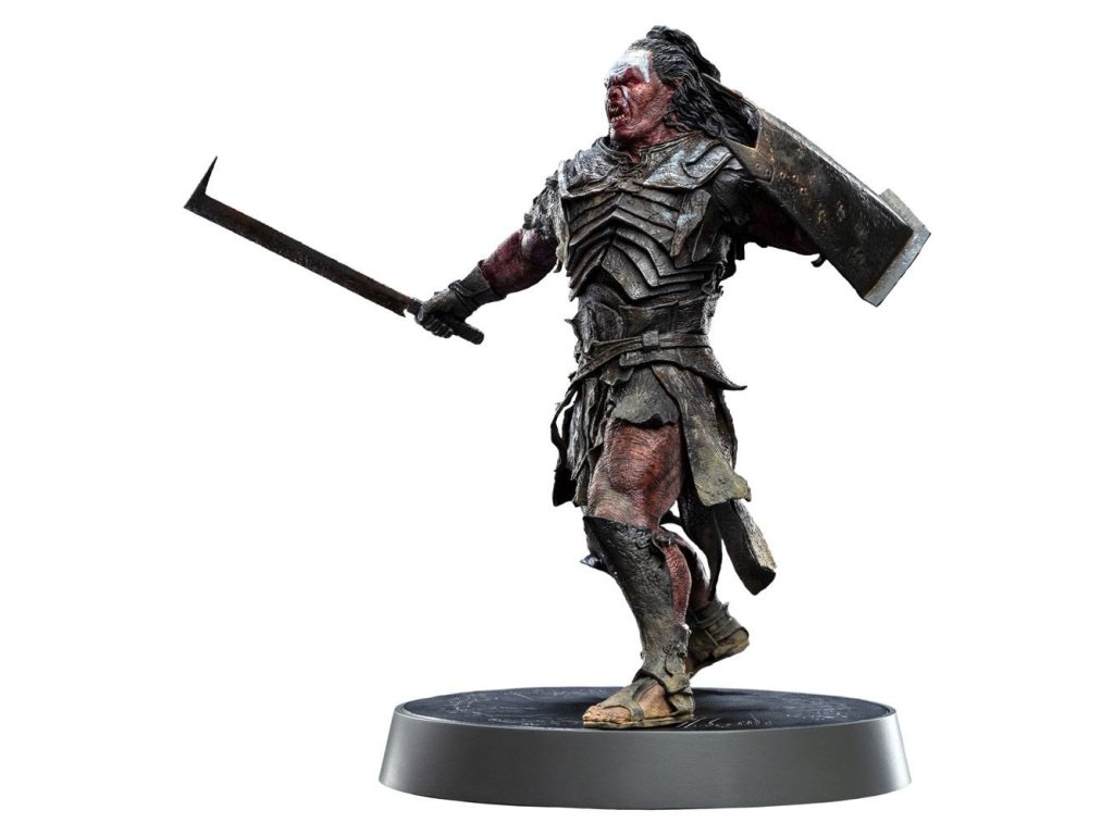 Od certifikovaných závislákov na figúrkach zo spoločnosti Weta Workshop prichádza séria Fandomové figúrky: kolekcia zberateľských figúrok ikonických postáv z filmov, televízie a hier! Novinka v tejto sérii: Pán prsteňov. Lurtz, ktorý bol vytvorený zrýchlenou rýchlosťou pod vežou Orthanc padlým čarodejníkom Sarumanom, je prvým z novej rasy orkov vyslaných zaútočiť na Spoločenstvo v Amon Hene. Títo vysokí, široký a hroziví bojovníci Uruk-hai dokážu bežať dlhé vzdialenosti bez odpočinku, dokonca aj pod žiarivým slnkom. Lurtz vedie prieskumnú skupinu mnohých desiatok týchto brutálnych stvorení, ktoré majú rysie oči a sú ostražité pri hľadaní akýchkoľvek stôp koristi, keď v lesoch Parth Galenu pátrajú po hobitoch. Držte svoj fandomový prápor vysoko so soškami Fandomu: ikonickými postavami z najhorúcejšej popkultúry. Každá figúrka je vyrobená z kvalitného PVC v približnej mierke 1:8, je verne zachytená pomocou 3D modelovania a doplnená štylizovaným scénickým podstavcom. Vlastnosti produktu: - vytvorené fanúšikmi pre fanúšikov; - vytvarované Yorke Yuom; - vyrobené z vysokokvalitného PVC; - Lurtz je spárovaný so svojím mečom a štítom Uruk-hai; - dizajn základne zobrazuje les Amon Hen; Lurtza sme navrhli ako doplnkovú postavu k Aragornovi. Dvaja neporovnateľní bojovníci na večnom bojisku dobra a zla. Tu si mocný Lurtz pripravuje štít a prekvapuje svojho nepriateľa; svaly napnuté, ako sa pripravuje na násilný a presný úder.Dodatočné parametre