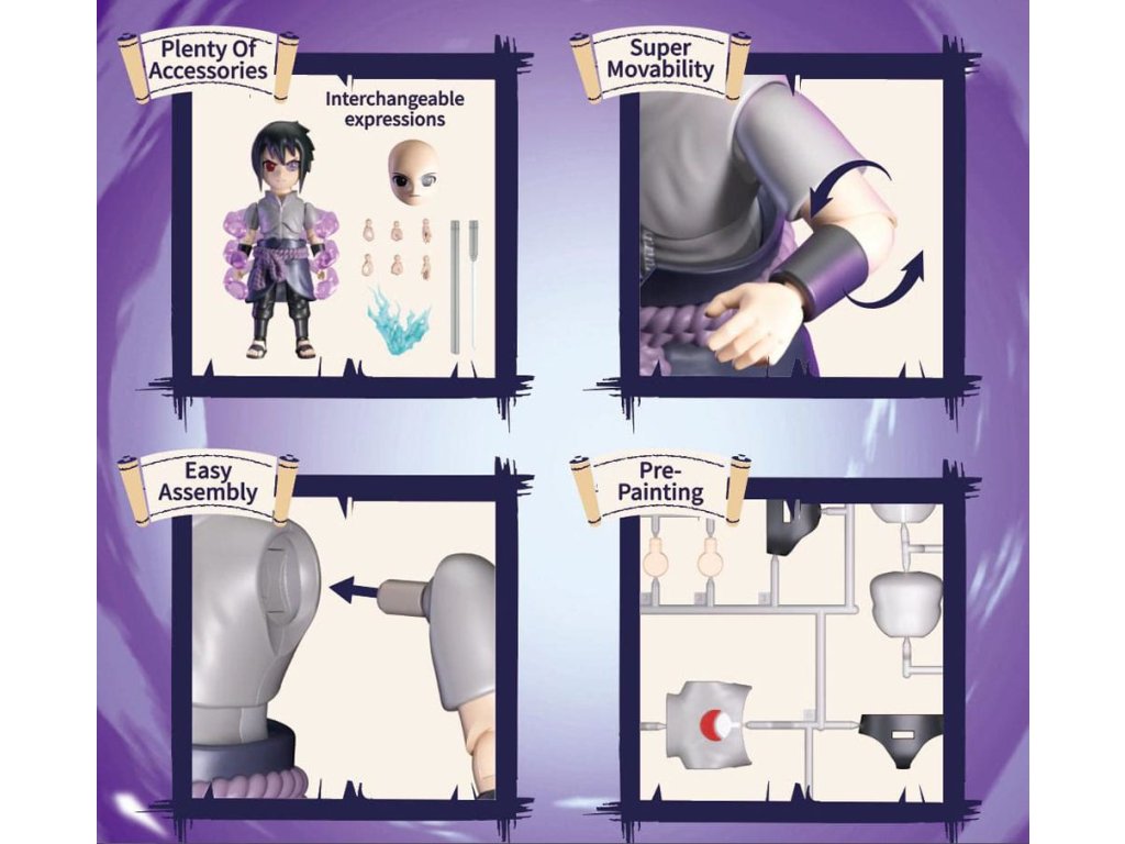 Tento "modelový set" pochádza z filmu Naruto. Figúrka je po zostavení vysoká približne 12 cm. Má veľa bodov pre artikuláciu a vymeniteľné časti. To umožňuje prezentovať figúrku v rôznych pózach.Dodatočné parametre