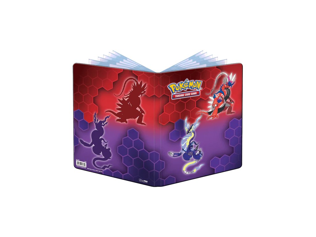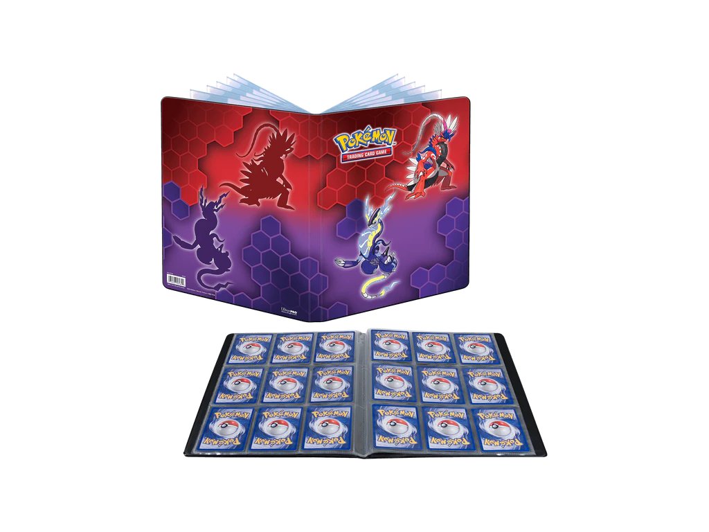 9-vreckové album pre Pokémonov má živý, plnofarebný obal s Koraidonom a Miraidonom. Album uchováva a chráni až 90 kariet štandardnej veľkosti jednostranne a 180 kariet obojstranne na polypropylénových stranách bezpečných pre archiváciu. Vyrobené v Kalifornii, USA.