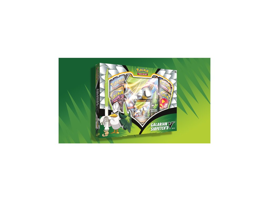 Vydajte sa na cestu odvahy a cti s udatným Galarianom Sirfetch'd V! Jeho bojové schopnosti a vždy pripravený bojovať pórovým oštepom z neho robia skutočný vzor sily! V tejto krabici ho nájdete v podobe čestného Galarčana Sirfetch'd v silnej verzii "Pokémon V" a v dvoch variantoch - vo fóliovej promo verzii a v nadrozmernej karte. Samozrejme, k dispozícii je aj štvorica posilňovacích balíčkov, ktoré úžasne rozšíria zbierku každého hráča.